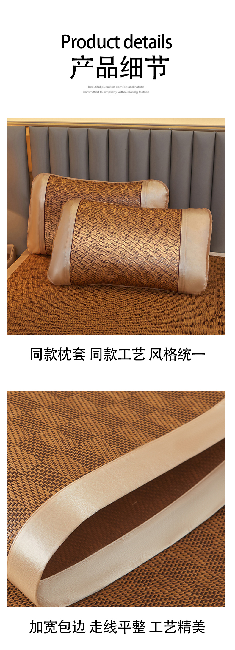 (总)席都凉席工厂店2025新款宽边冰藤席三件套-小熊绣花,饼干花,步步高,水中花