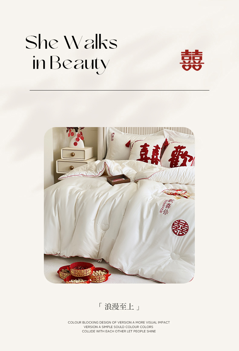 商品名称:芯氧 2023新款 轻奢100s贡缎全棉婚庆被喜被大豆被欢喜你系列