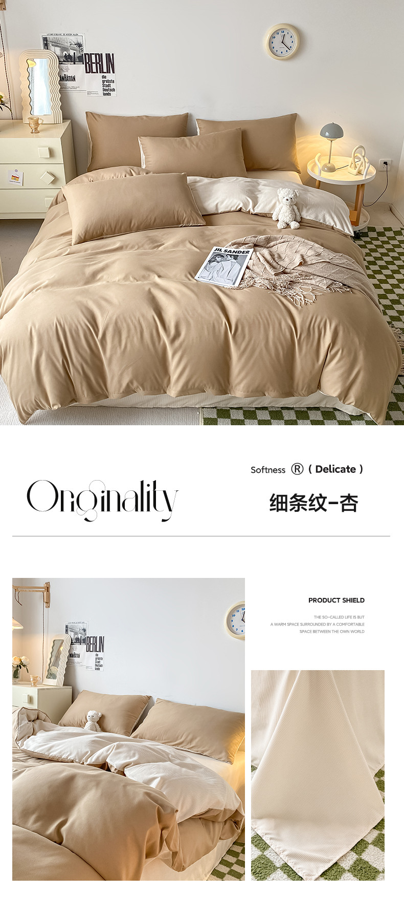 当前位置: 91家纺网 > 商品网购 > 床品套件 > 四件套 > 普通磨毛四件套 > 阿曼达 2023新款水洗亲肤磨毛四件套 细条纹-杏