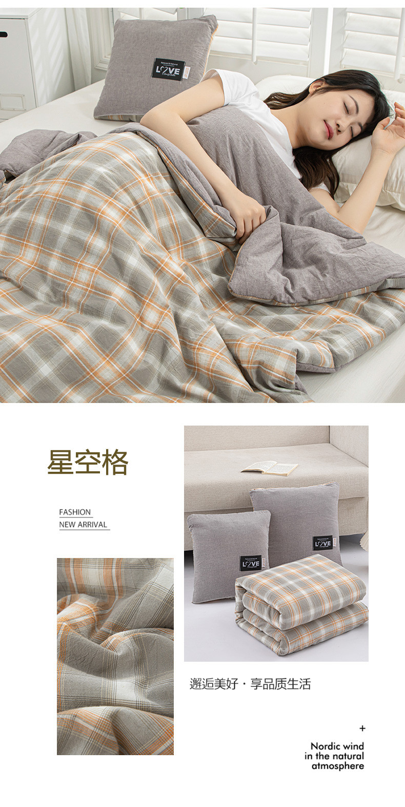 翰轩家居 2023新款全棉色织水洗棉大豆抱枕被 星空格