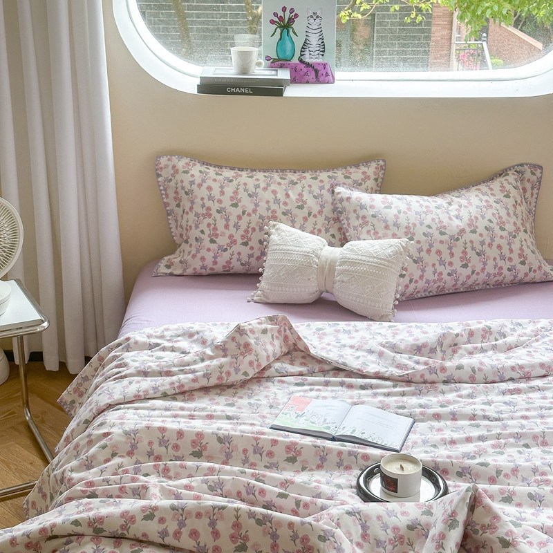 商品名称:柚子 2023新款全棉有氧双层纱夏被四件套 甜蜜花园