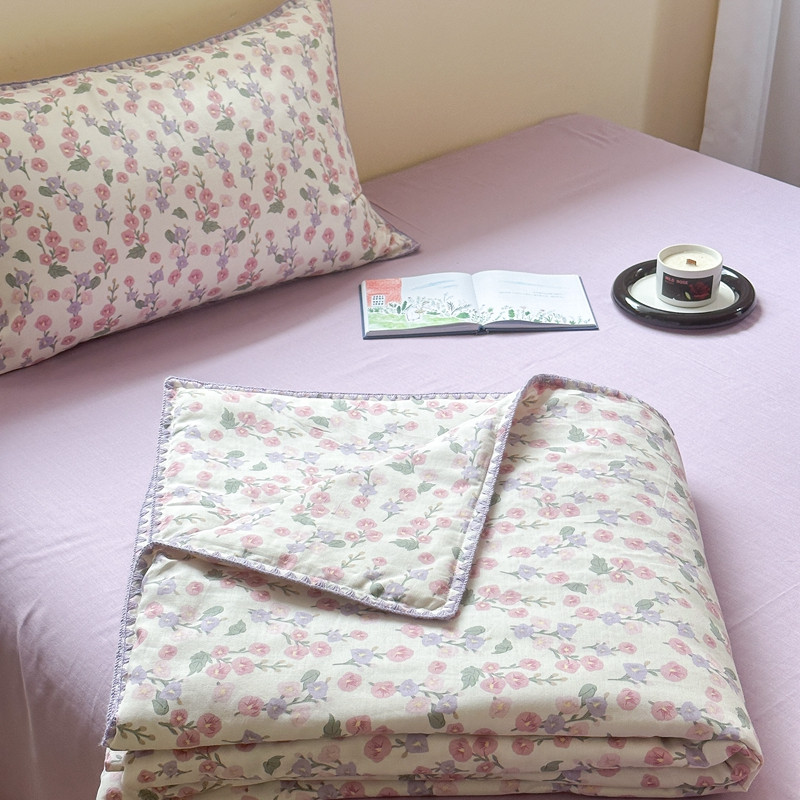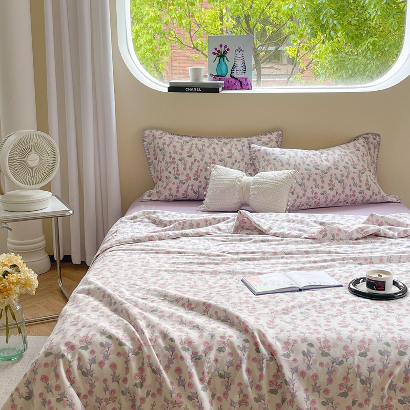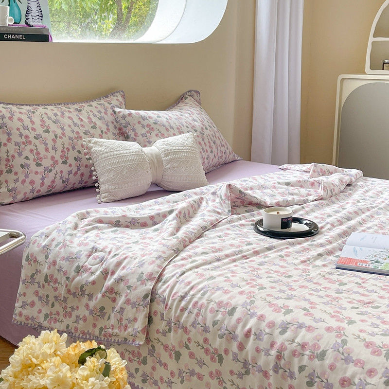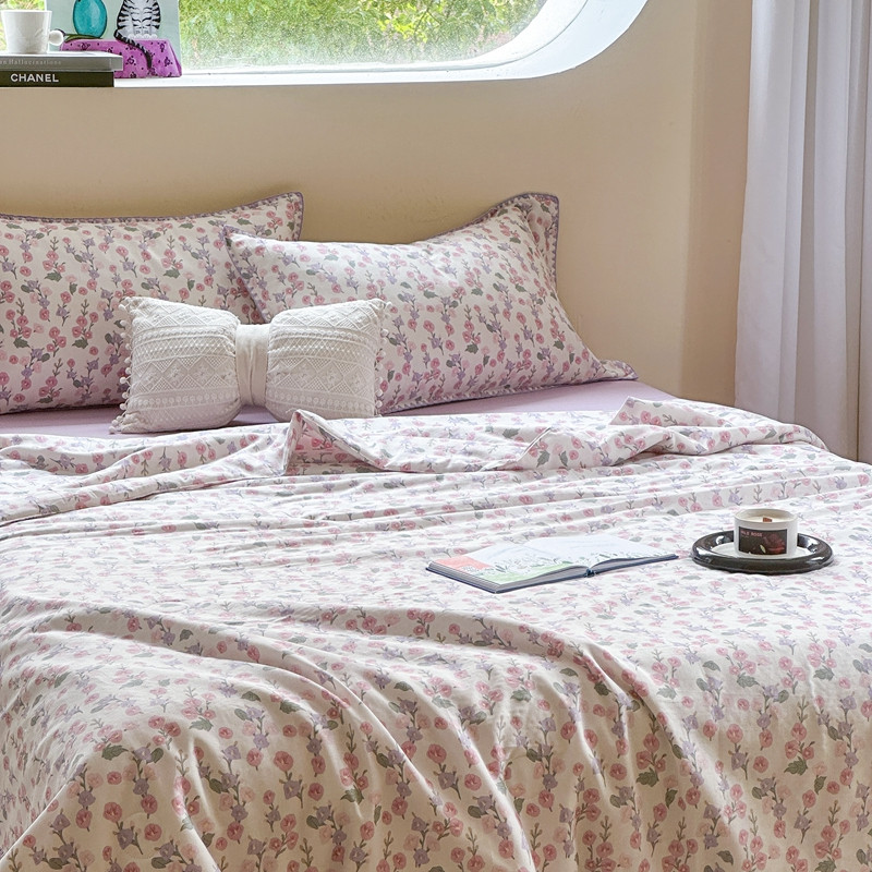 柚子 2023新款全棉有氧双层纱夏被四件套 甜蜜花园