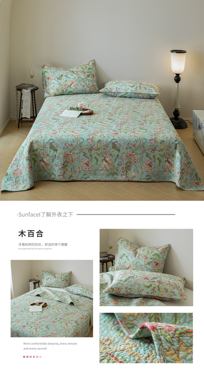 商品名称:上喜 热卖双面全棉印花密绗床盖三件套 木百合