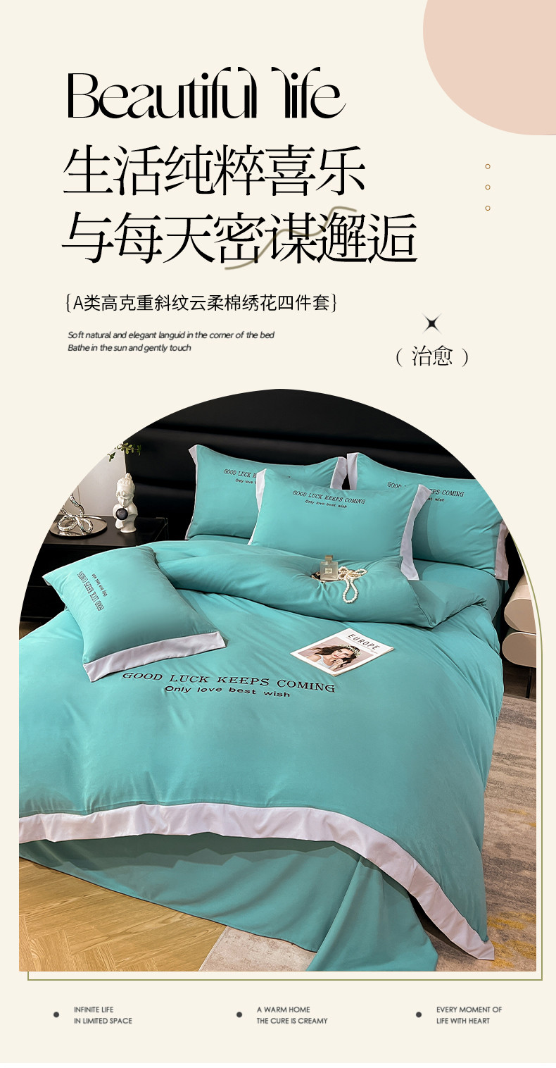 当前位置: 91家纺网 > 商品网购 > 床品套件 > 四件套 > 磨绒四件套 > 易辰美 2024新款轻奢A类高克重斜纹云柔棉绣花四件套 祖母绿