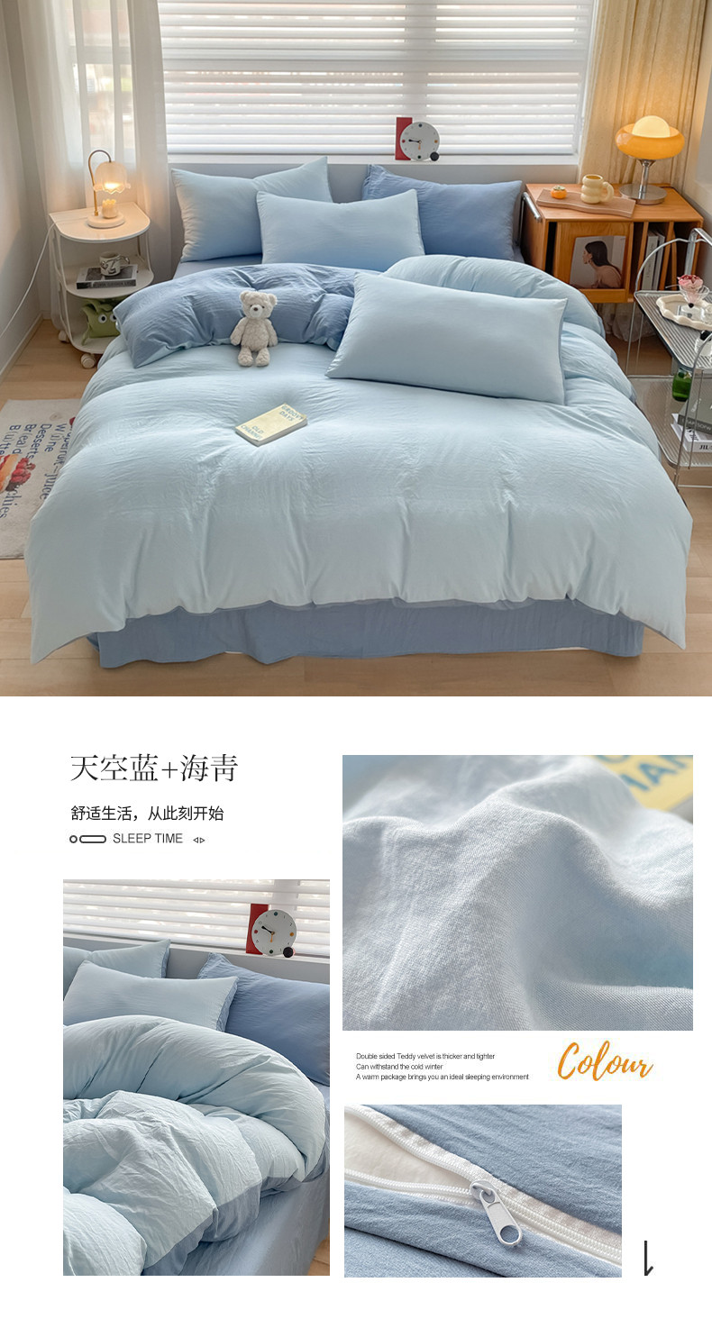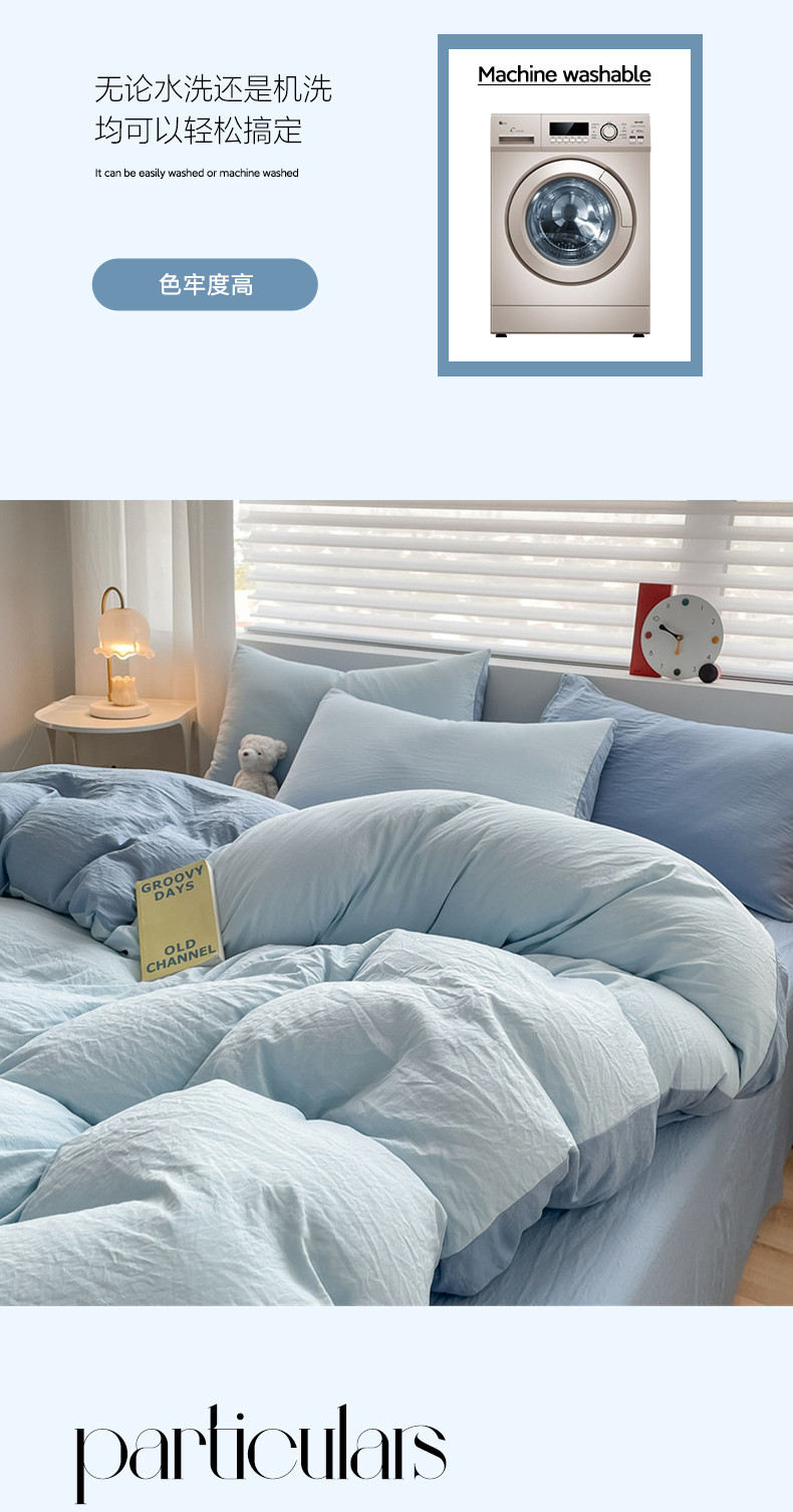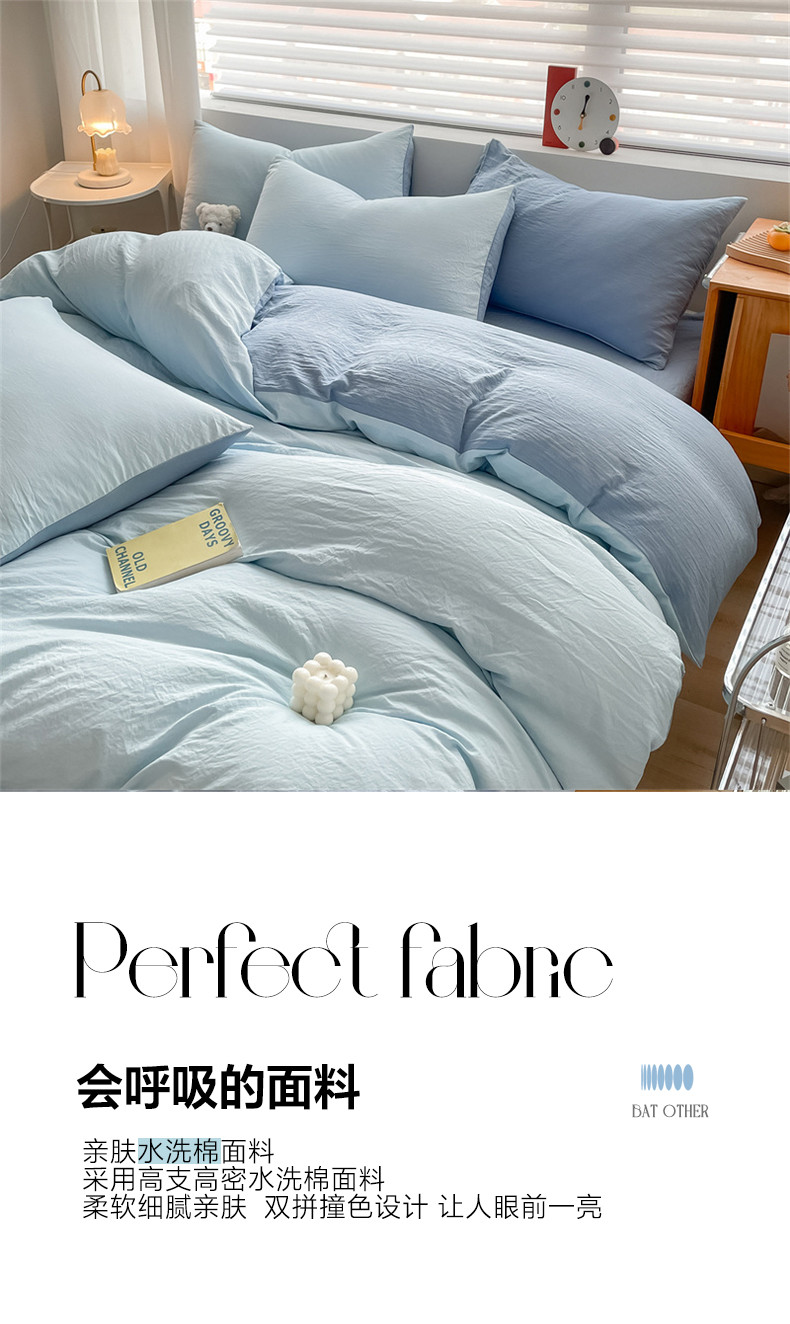 当前位置: 91家纺网 > 商品网购 > 床品套件 > 四件套 > 水洗棉四件套 > 古吉梦 2023新款纯色-双拼水洗棉四件套 纯色-天空蓝+海青