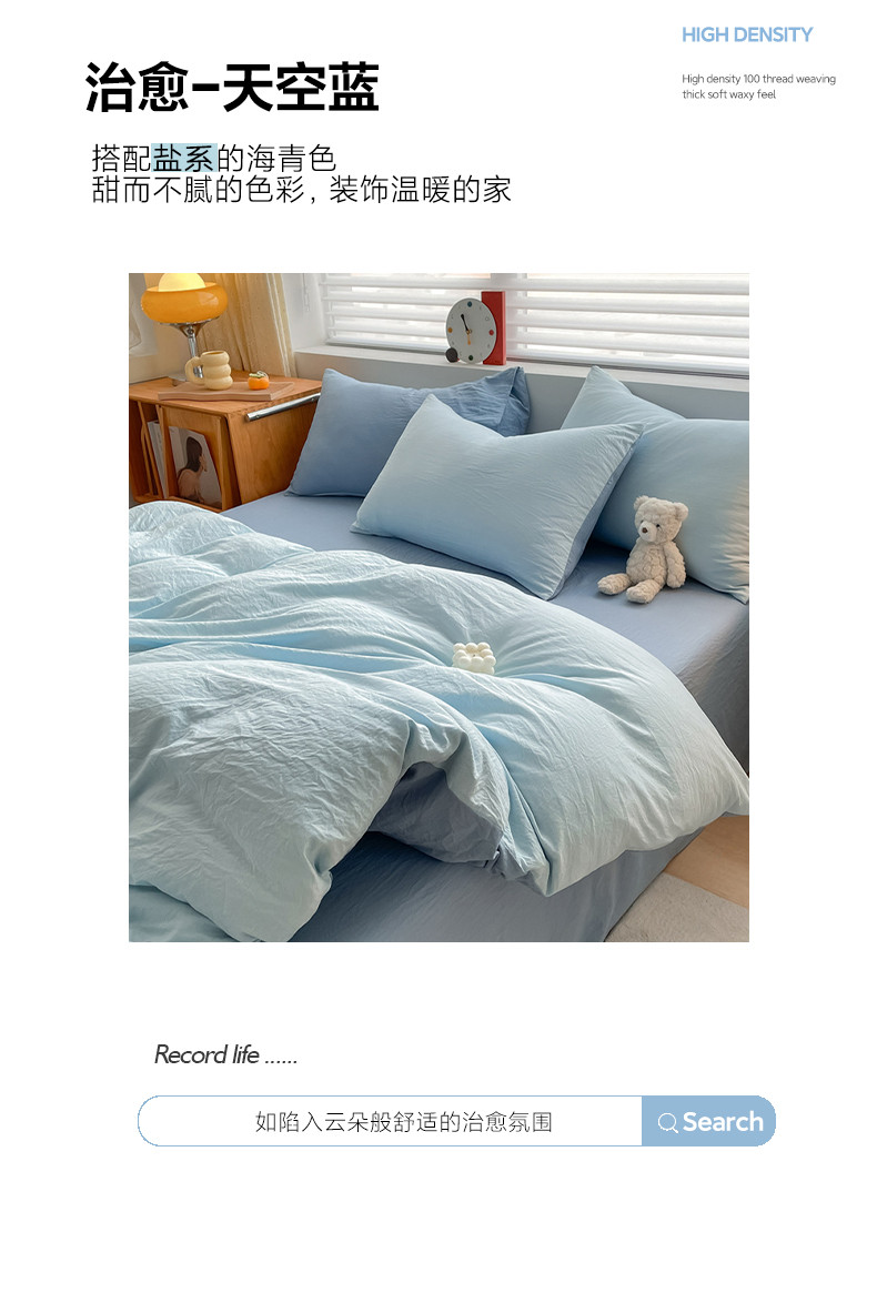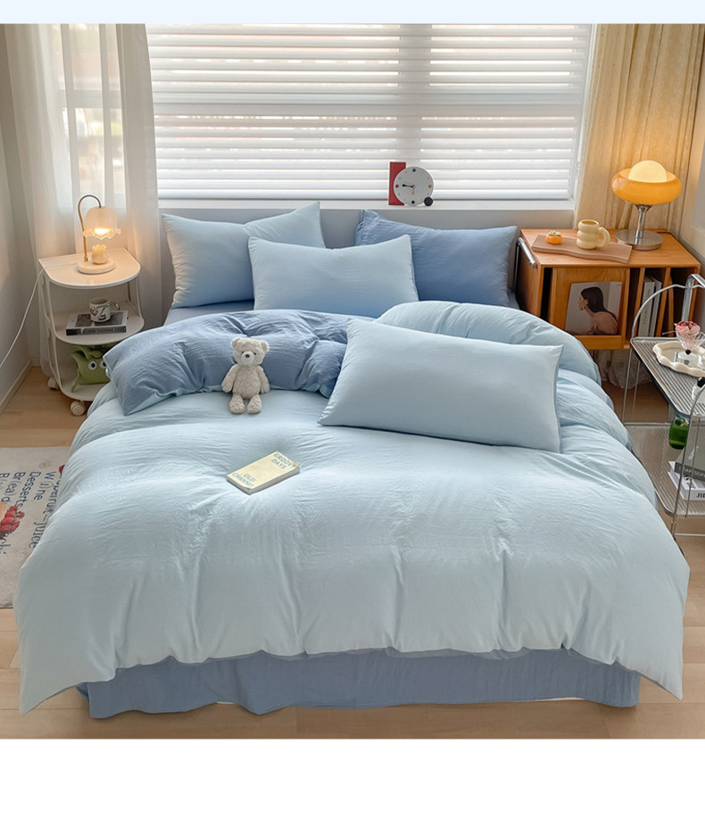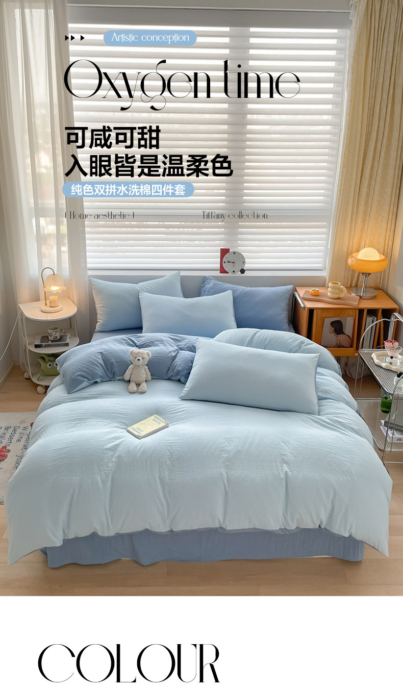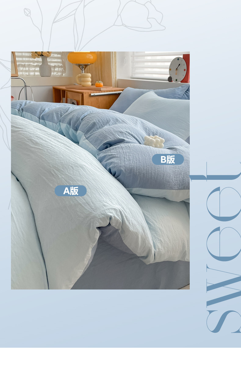 当前位置: 91家纺网 > 商品网购 > 床品套件 > 四件套 > 水洗棉四件套 > 古吉梦 2023新款纯色-双拼水洗棉四件套 纯色-天空蓝+海青