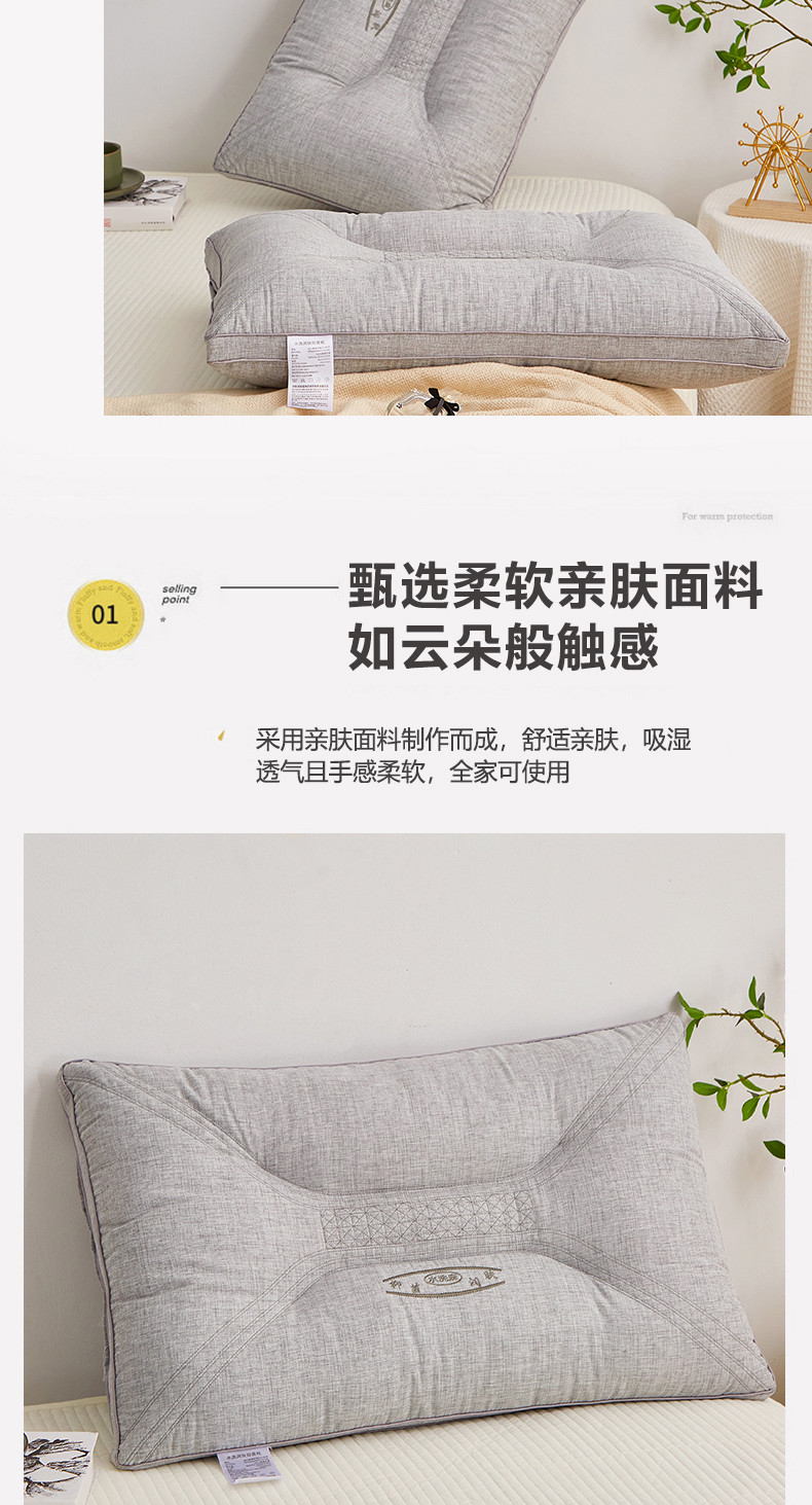(总)歌历斯家纺 2025新款羊绒蚕丝枕枕头枕芯,羊绒枕48*74cm/只