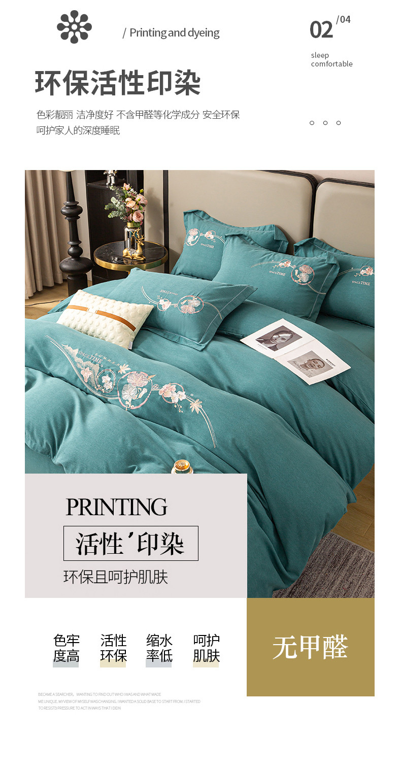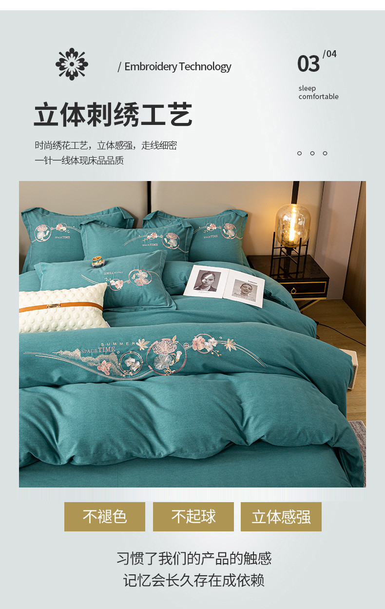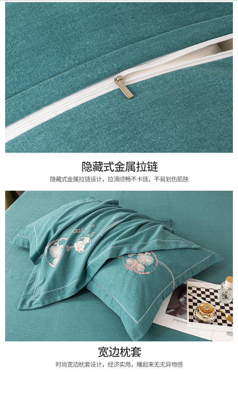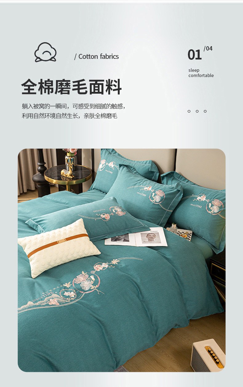 商品名称:昊翔2024新款绣花全棉磨毛刺绣工艺款四件套量大优惠花意浓-薄荷绿