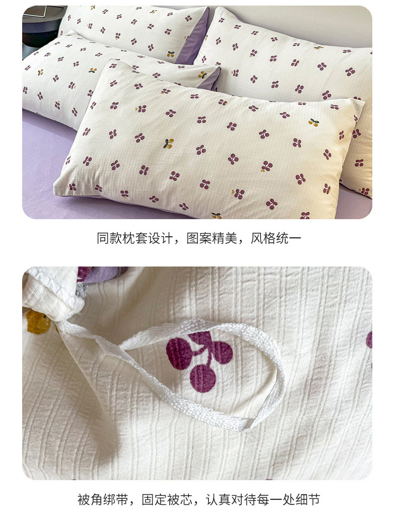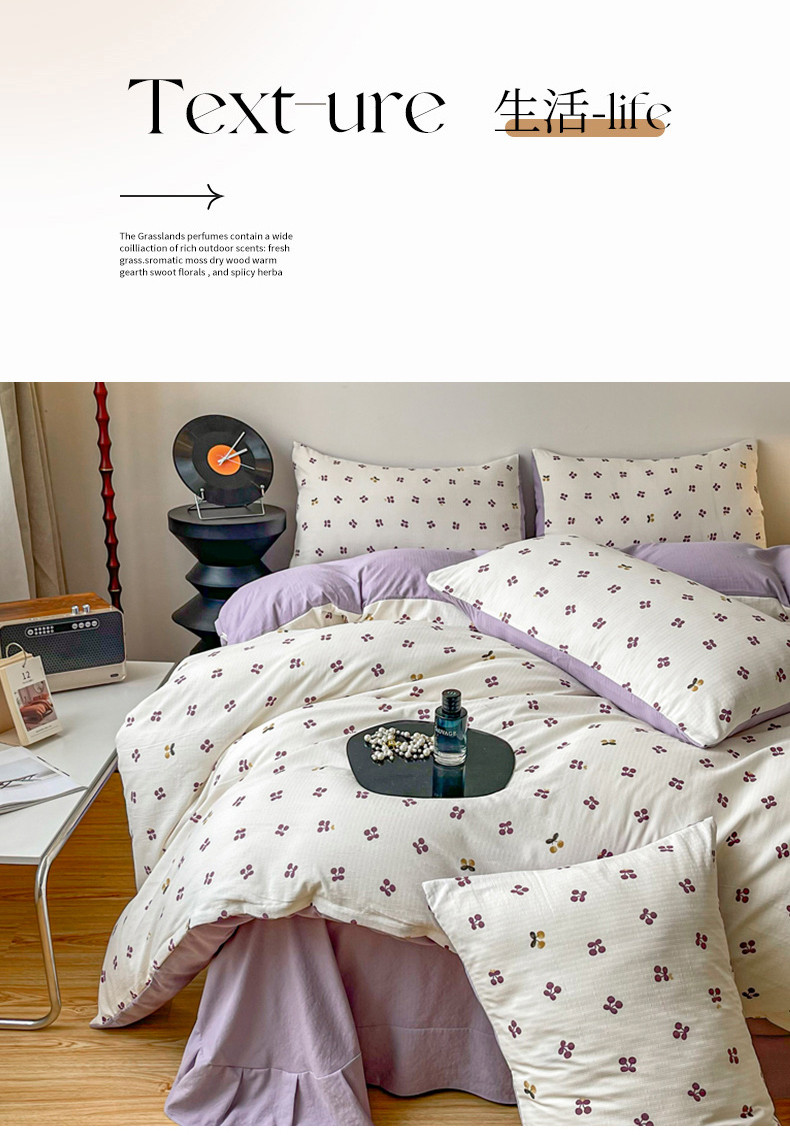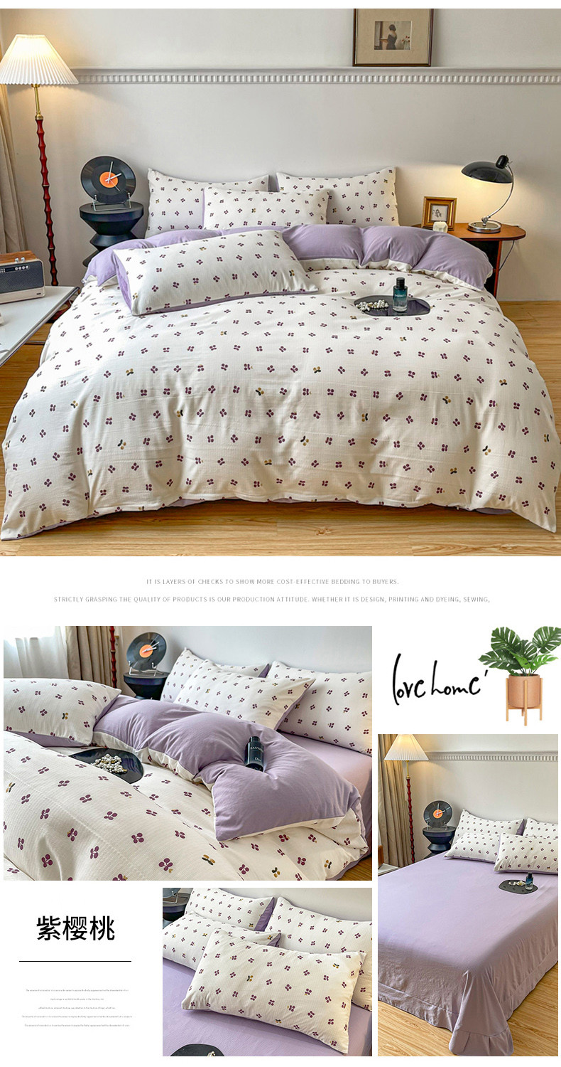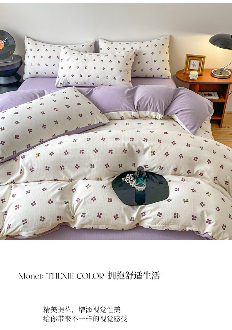 一比一 2023直播爆款超柔提花小竺棉法式复古亲肤水洗四件套紫樱桃