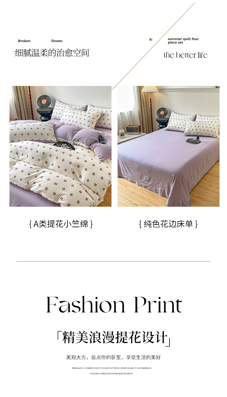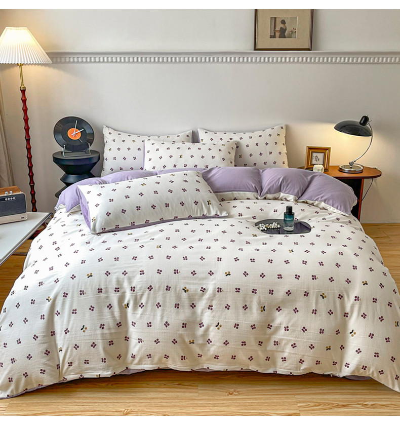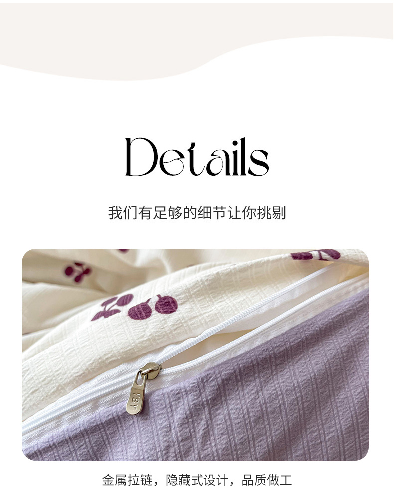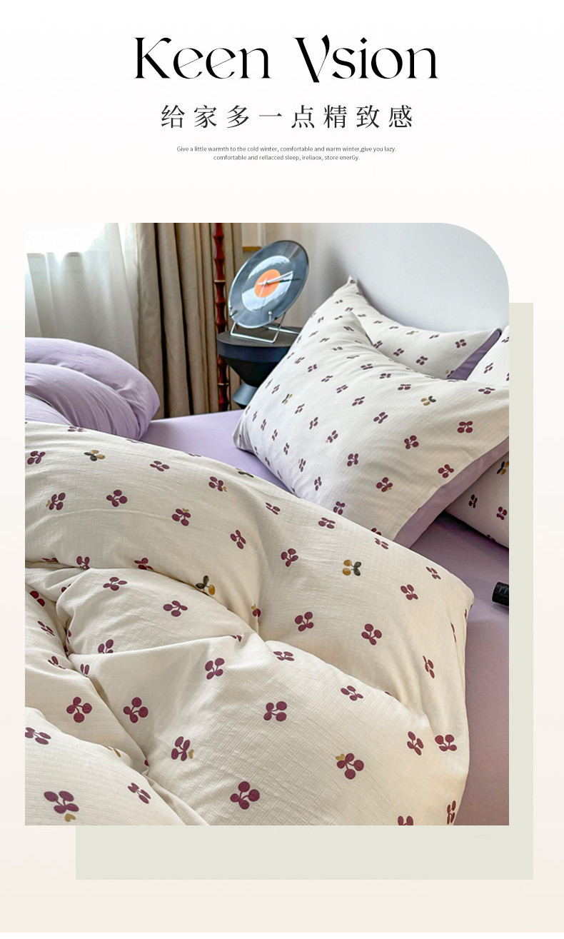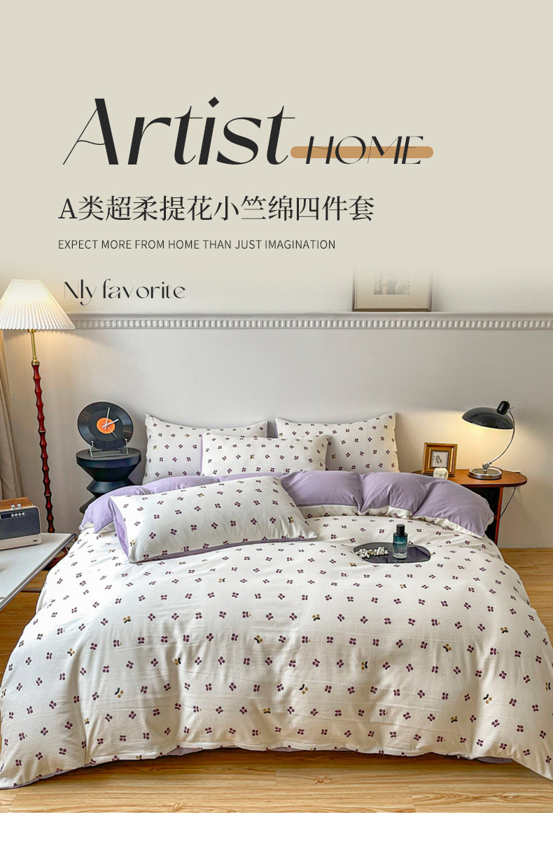一比一 2023直播爆款超柔提花小竺棉法式复古亲肤水洗四件套紫樱桃