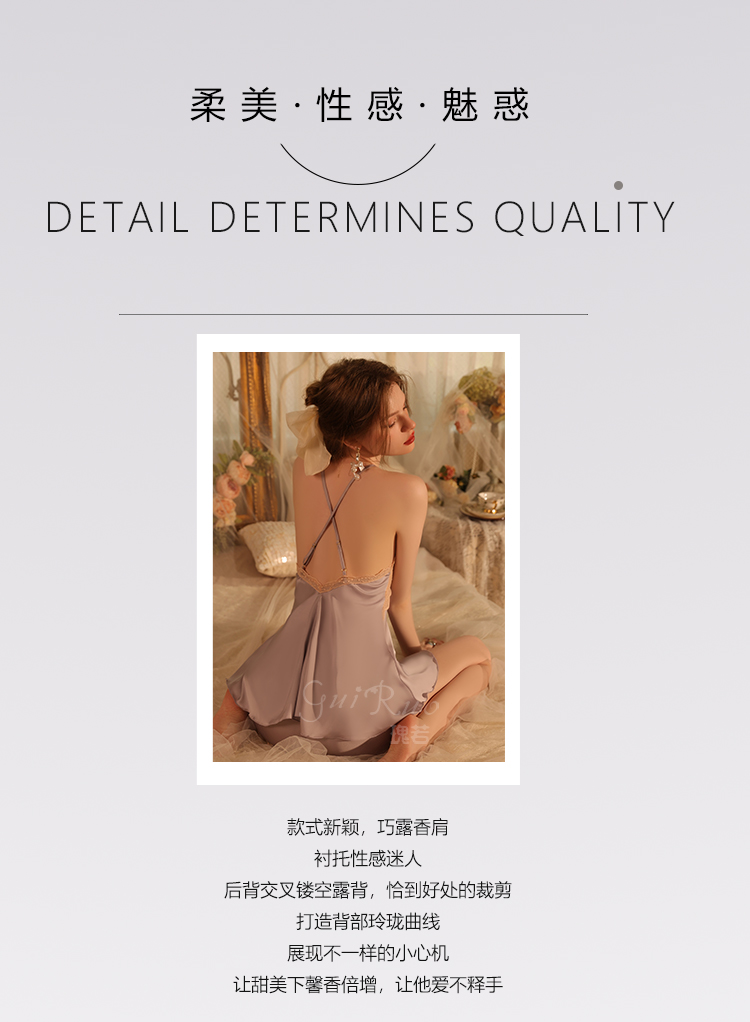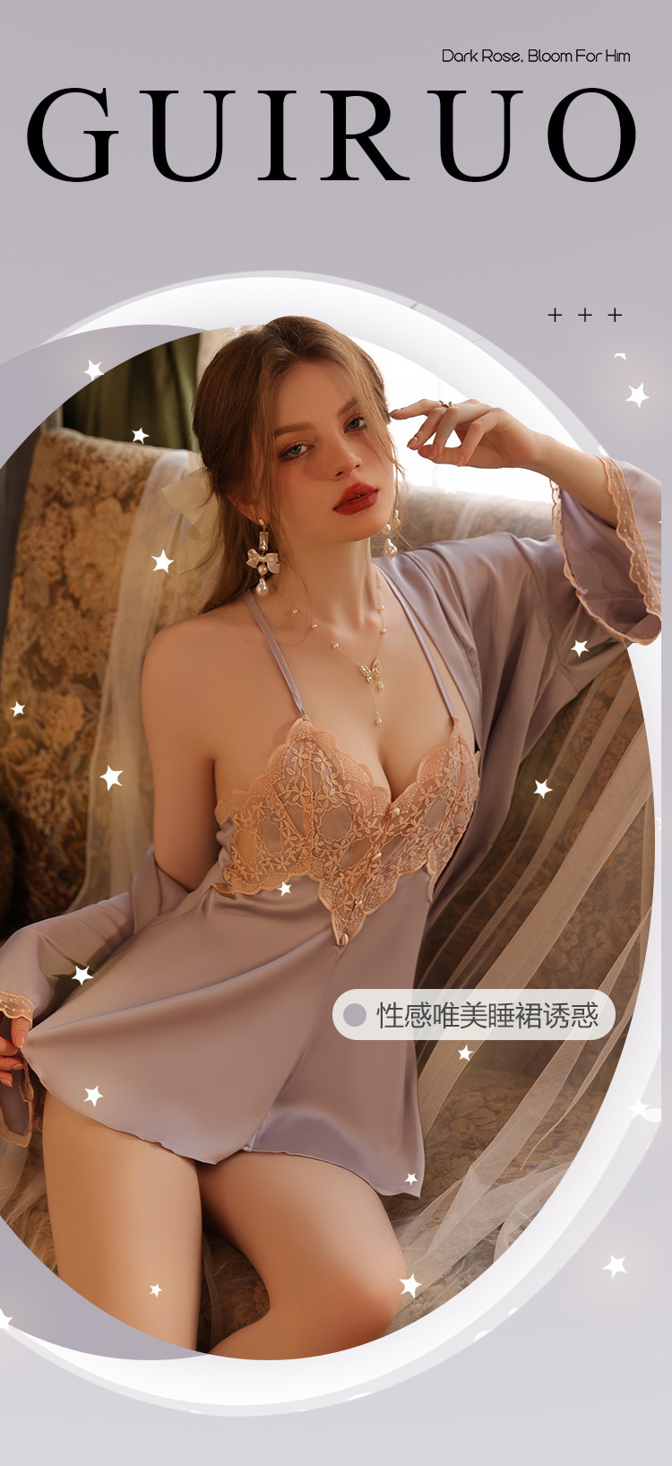 商品名称:洛兰沙 2023新款外贸冰丝蕾丝吊带和两件套-2196暴暴 枣红