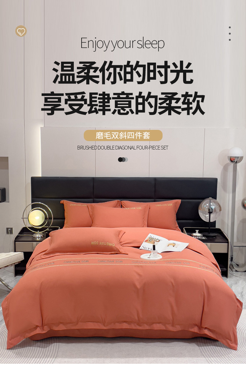 商品名称:金米诺 2024新款磨毛双斜四件套 爱马橙