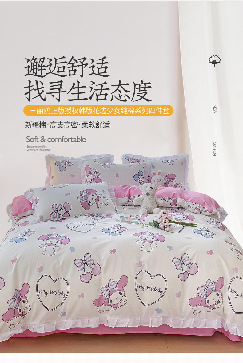 商品名称:桃子 2023新款三丽鸥正版授权韩版花边少女纯棉系列四件套 棉花边-蝴蝶美乐蒂