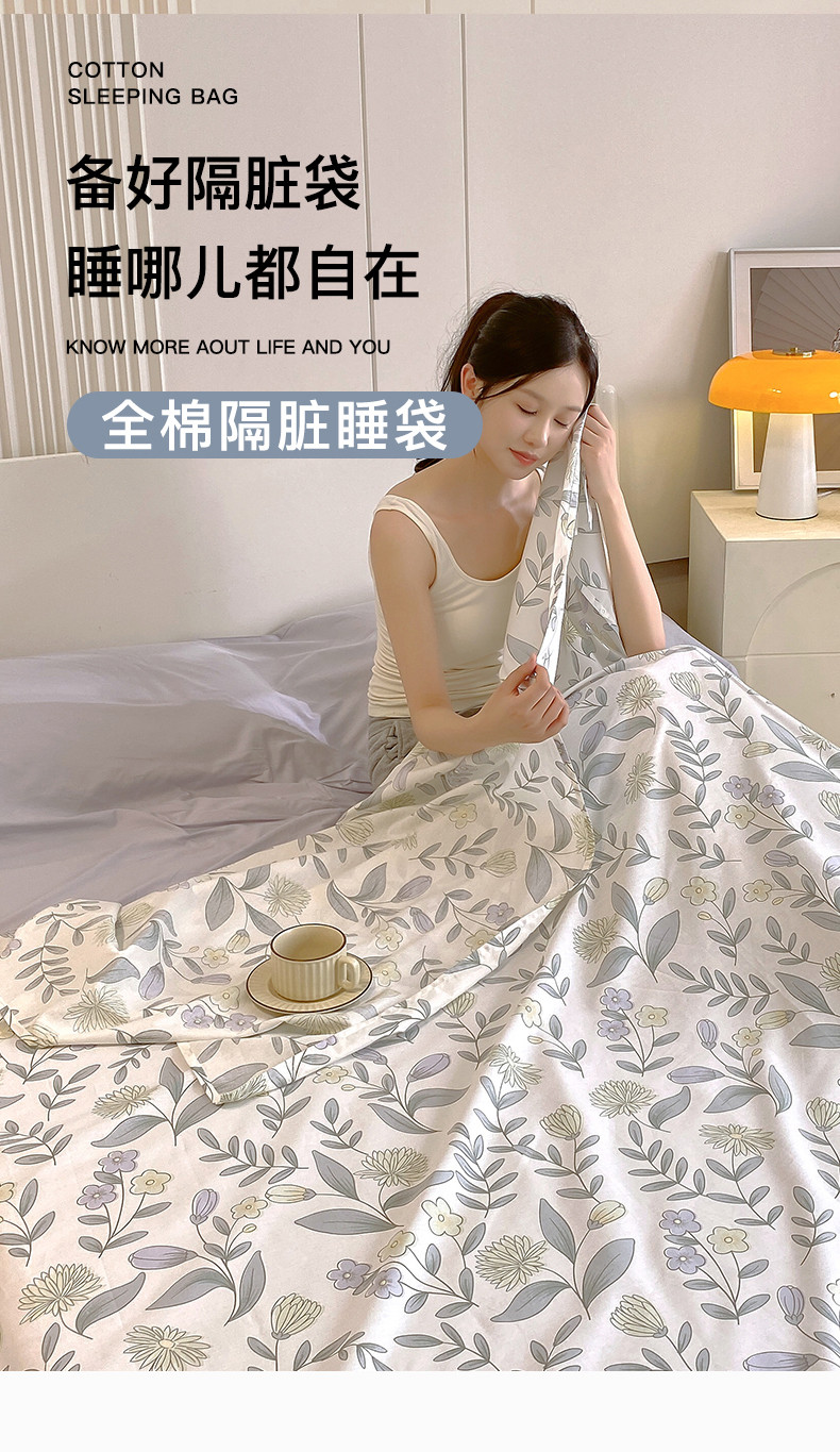 商品名称:金鑫汇 2023新款全棉亲肤印花隔脏睡袋 诗情画意