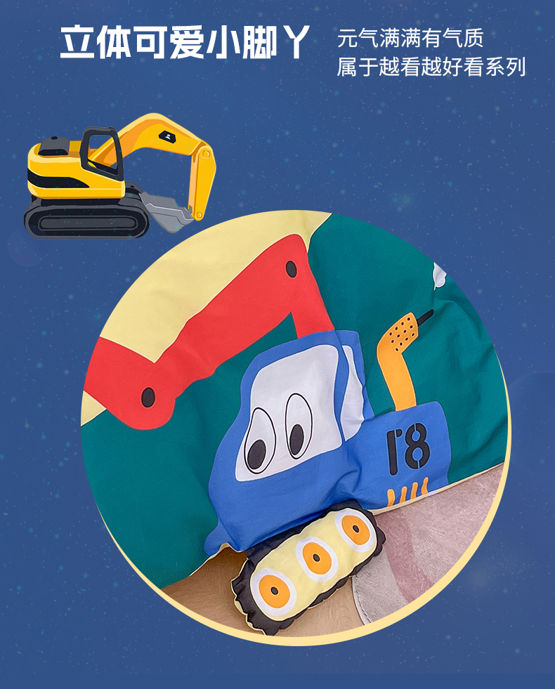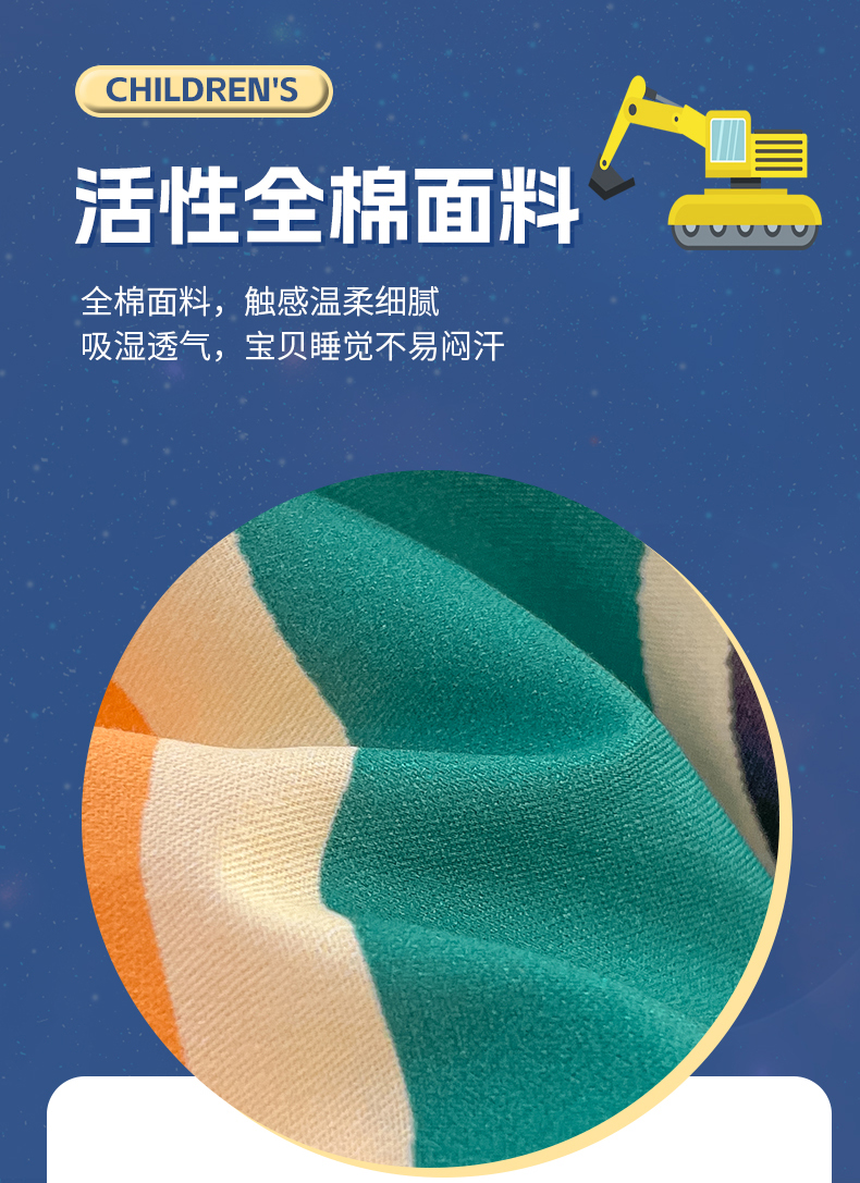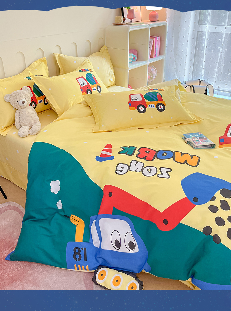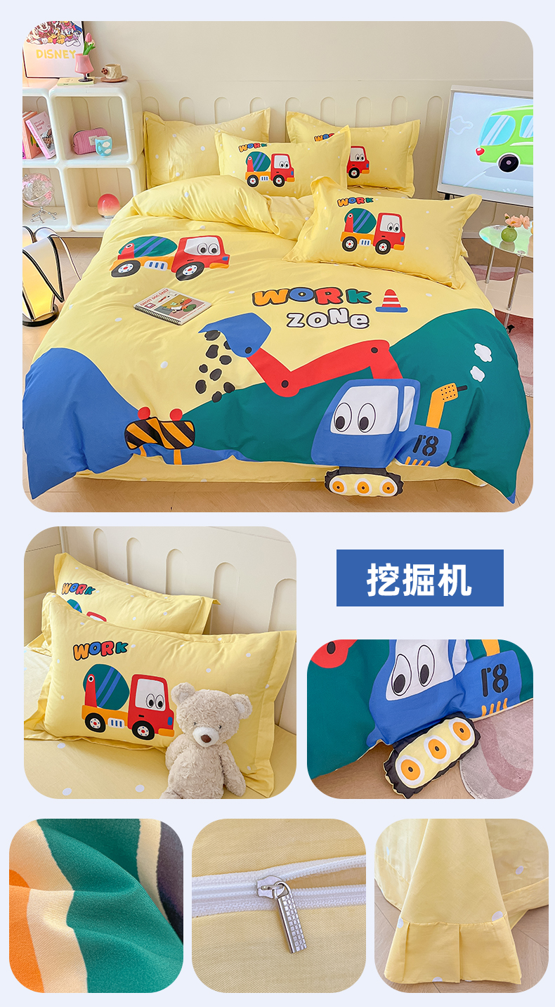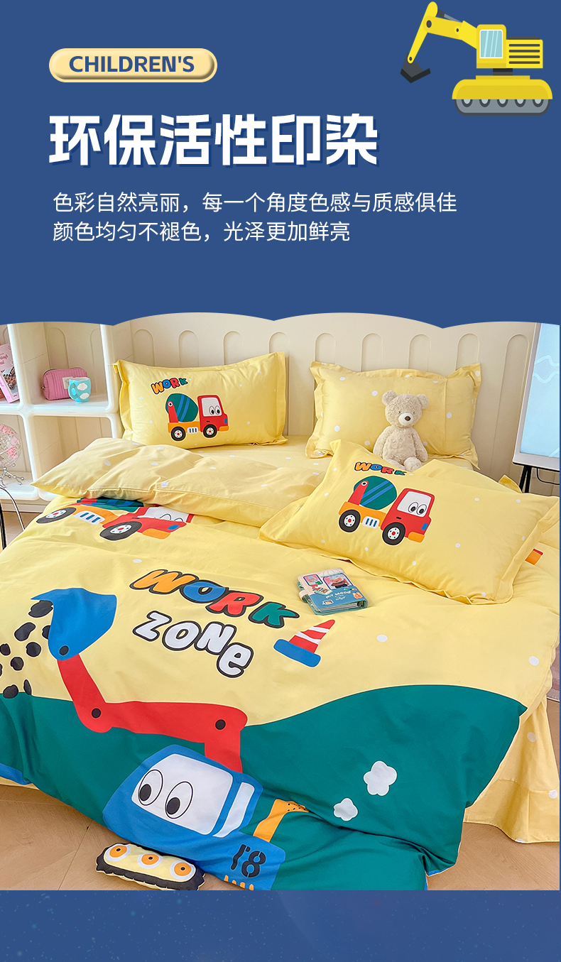 商品名称:孩子王家纺 2023新款全棉卡通学生活性印花大版工艺款四件套 挖掘机