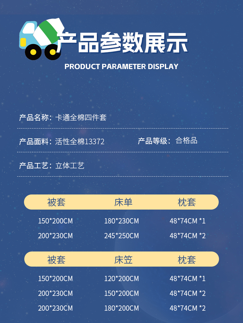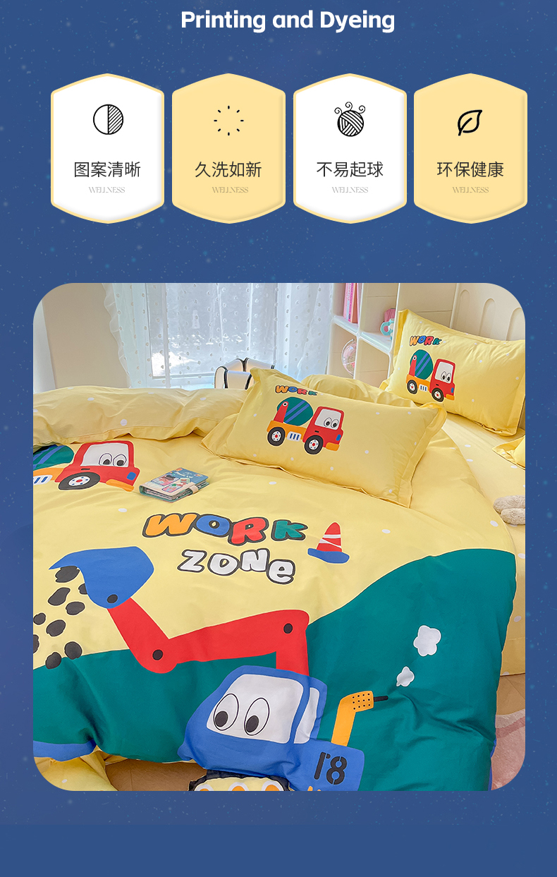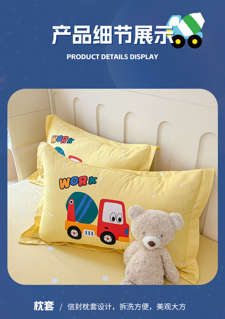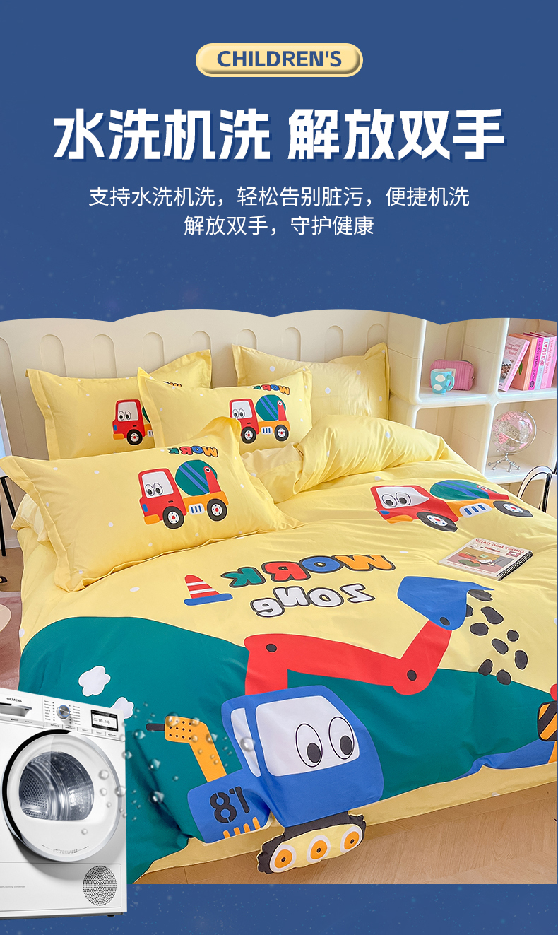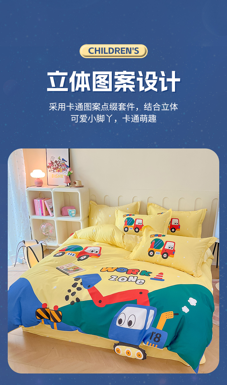 商品名称:孩子王家纺 2023新款全棉卡通学生活性印花大版工艺款四件套 挖掘机