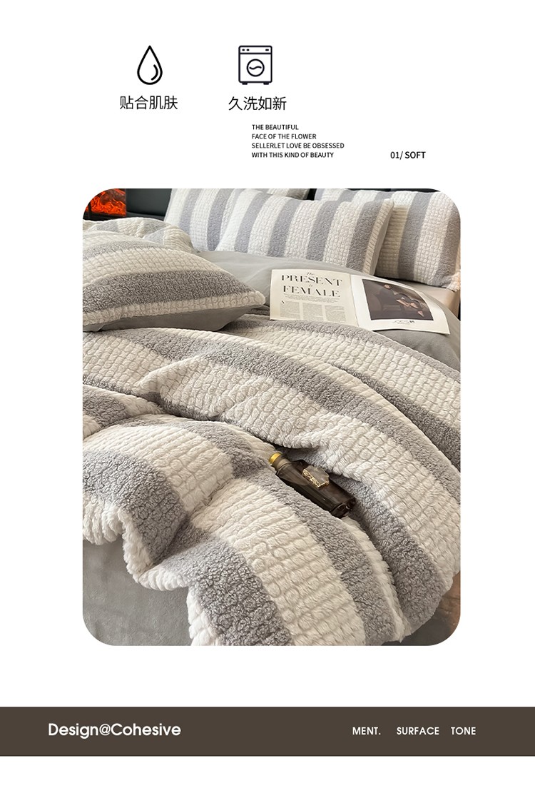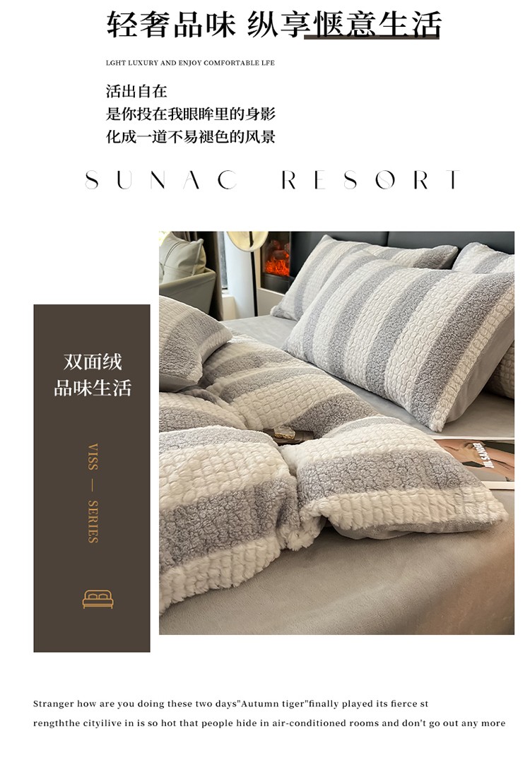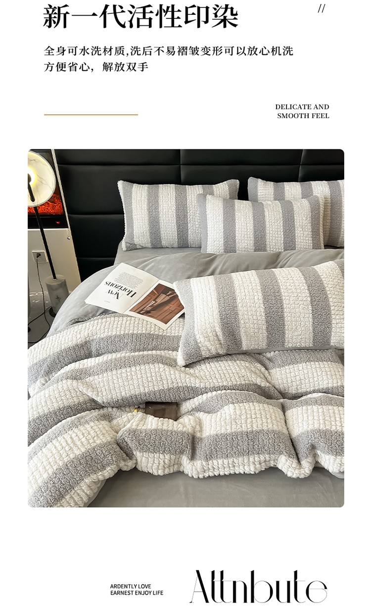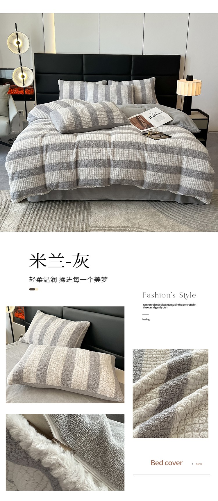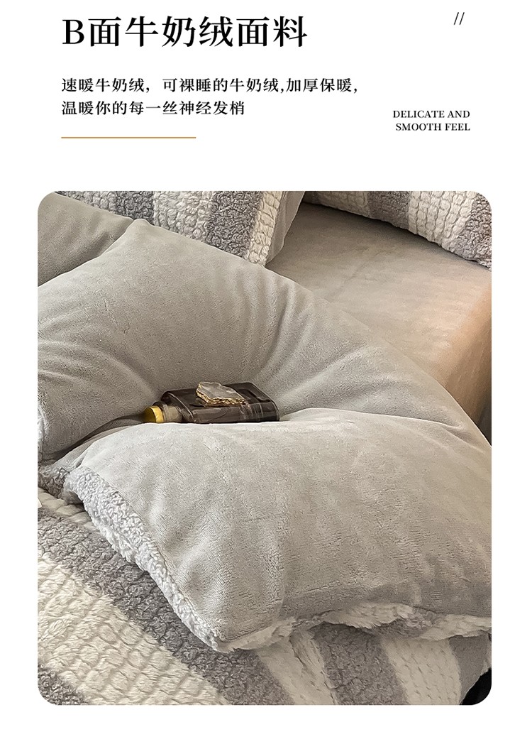 商品名称:韩都家居2023直播爆款高端320克A类泰迪兔毛绒剪花纯色牛奶绒四件套 米兰-灰