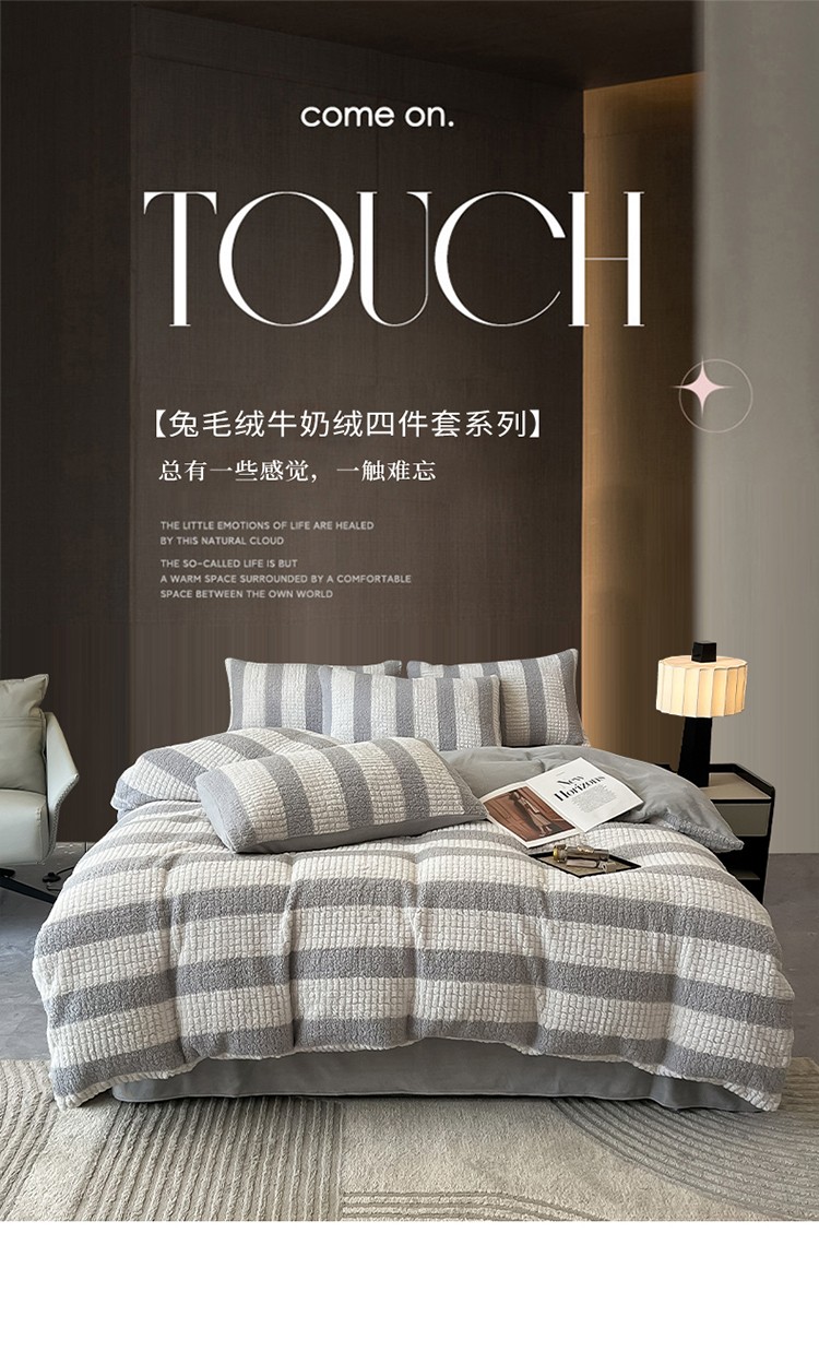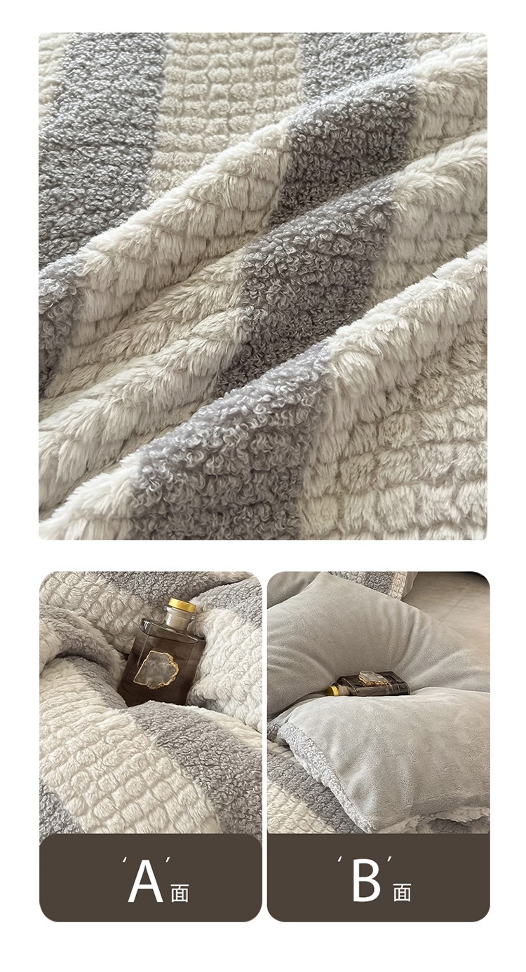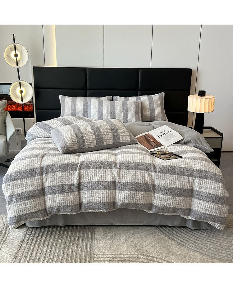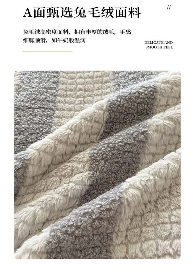 韩都家居2023直播爆款高端320克A类泰迪兔毛绒剪花纯色牛奶绒四件套 米兰-灰