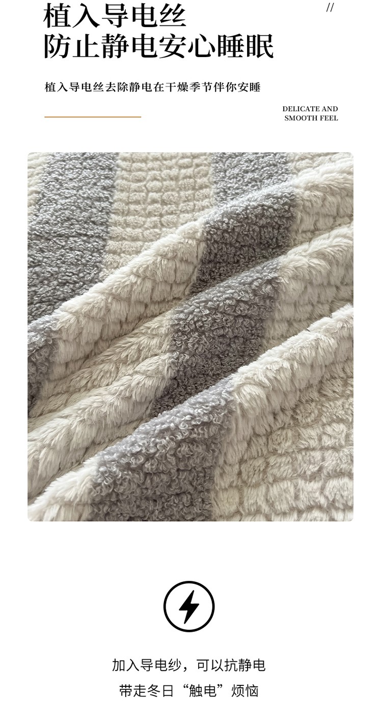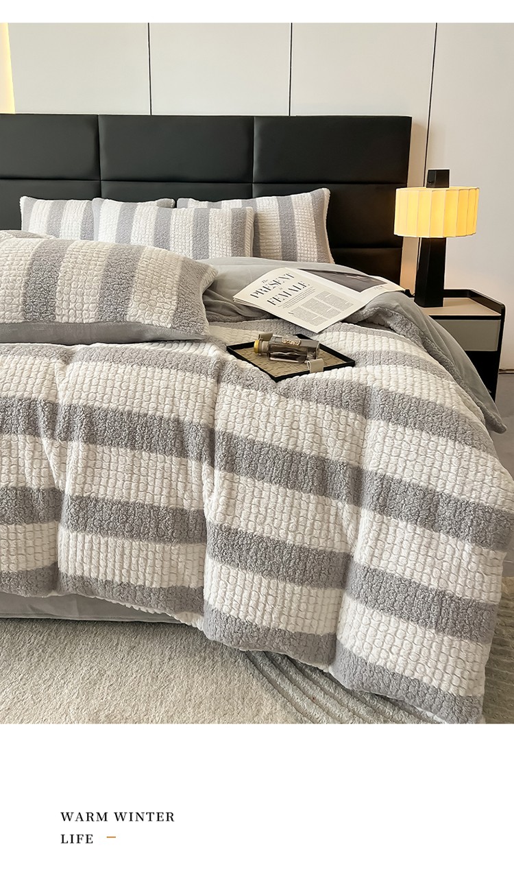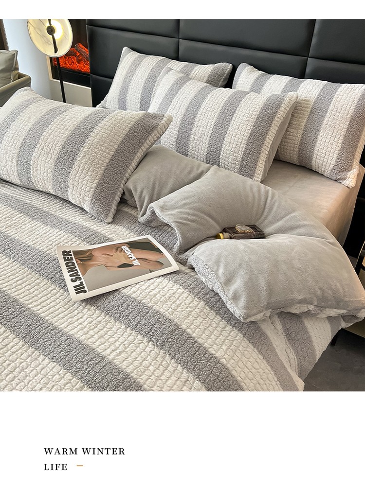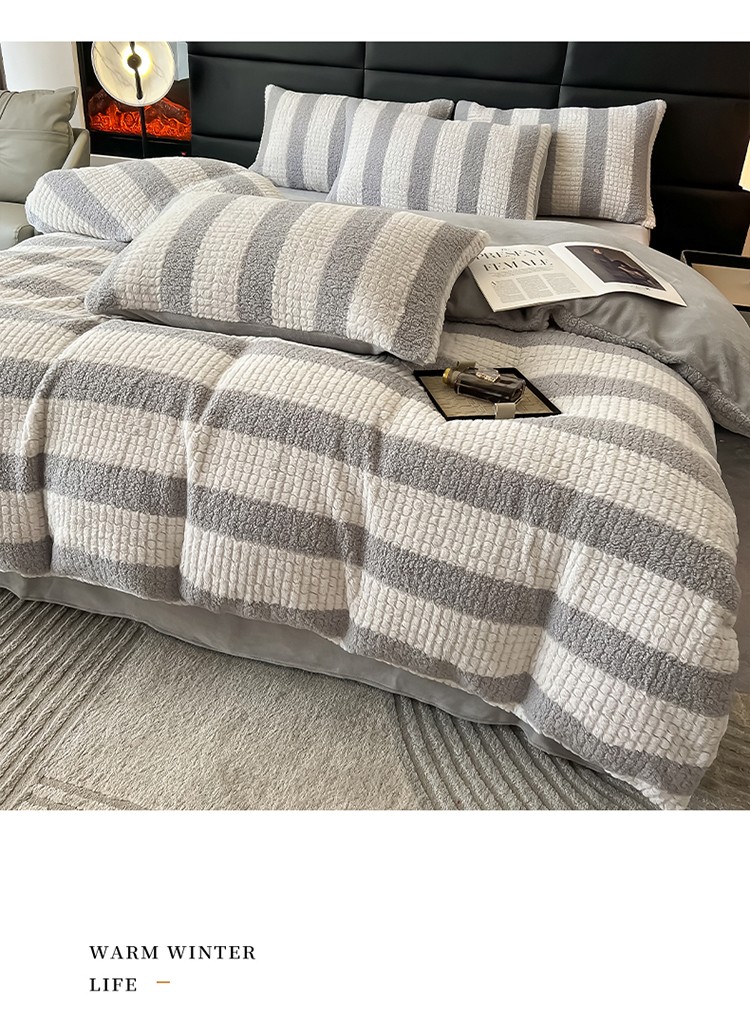 韩都家居2023直播爆款高端320克A类泰迪兔毛绒剪花纯色牛奶绒四件套 米兰-灰