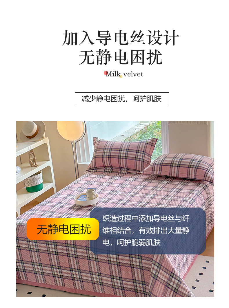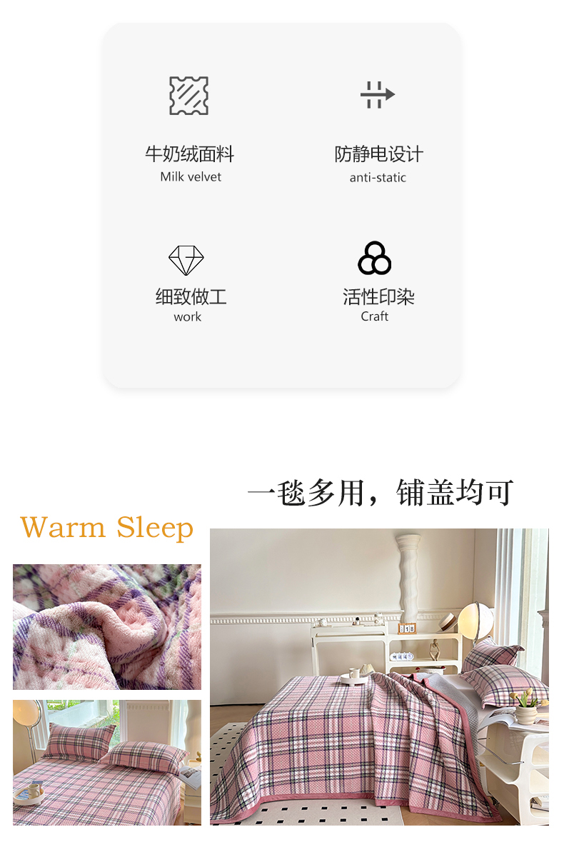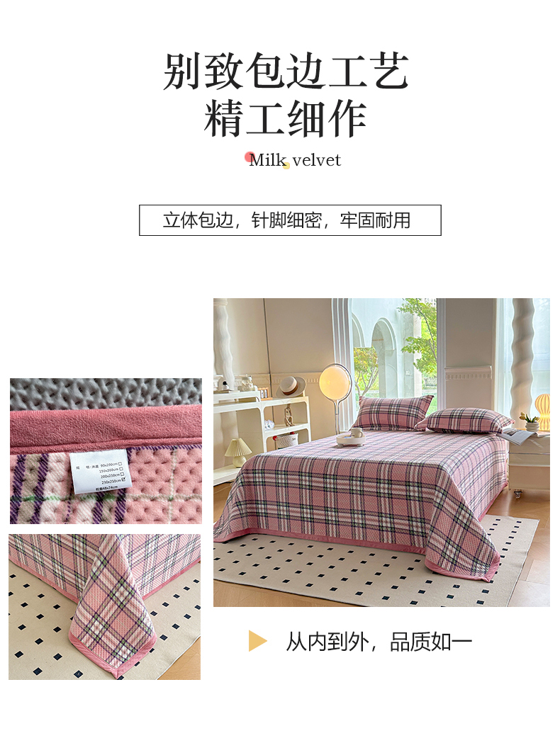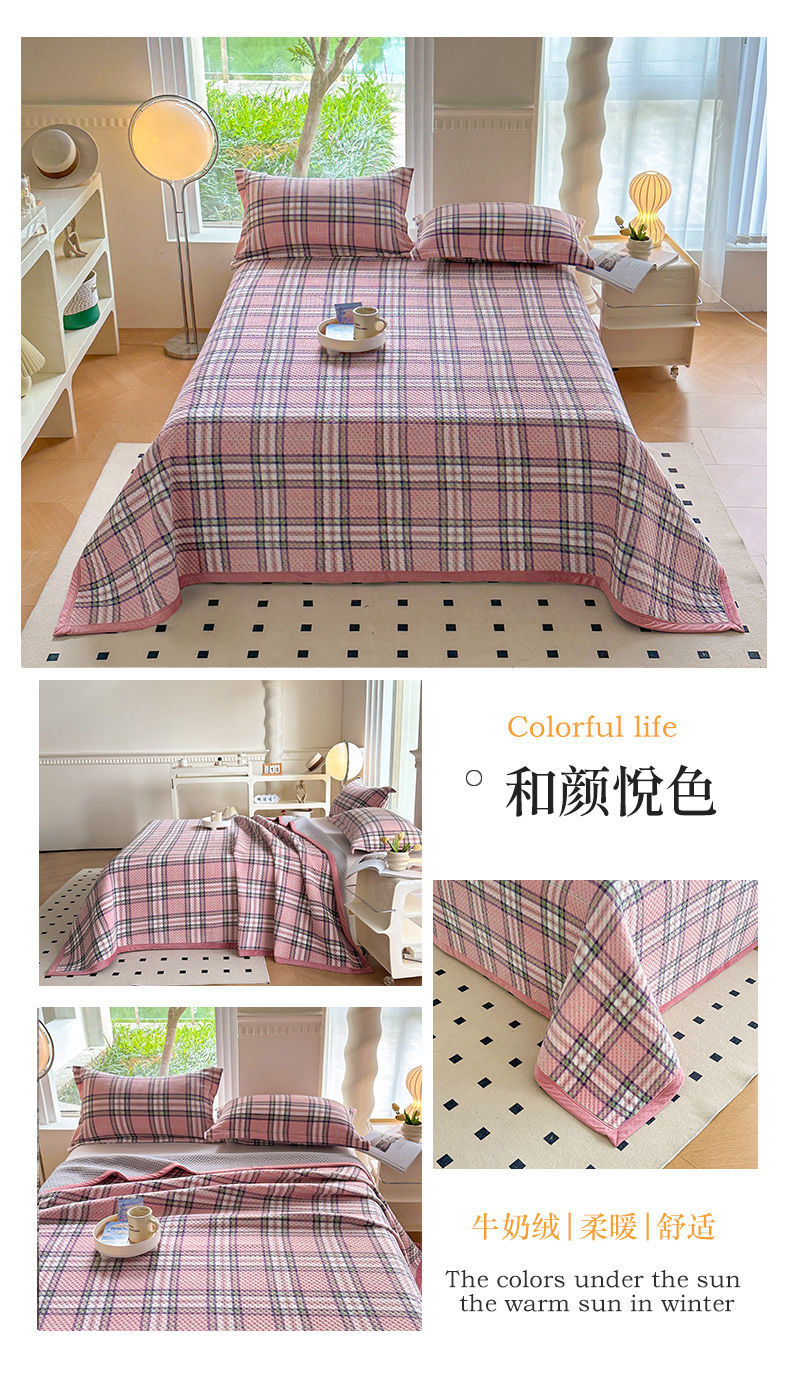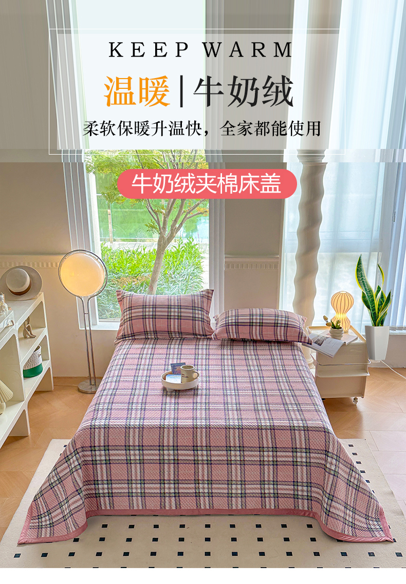 • 91家纺网 家纺一手货源 找家纺 胜权 2024款高克重牛奶绒夹棉单床盖单件保暖床盖三件套 和颜悦色