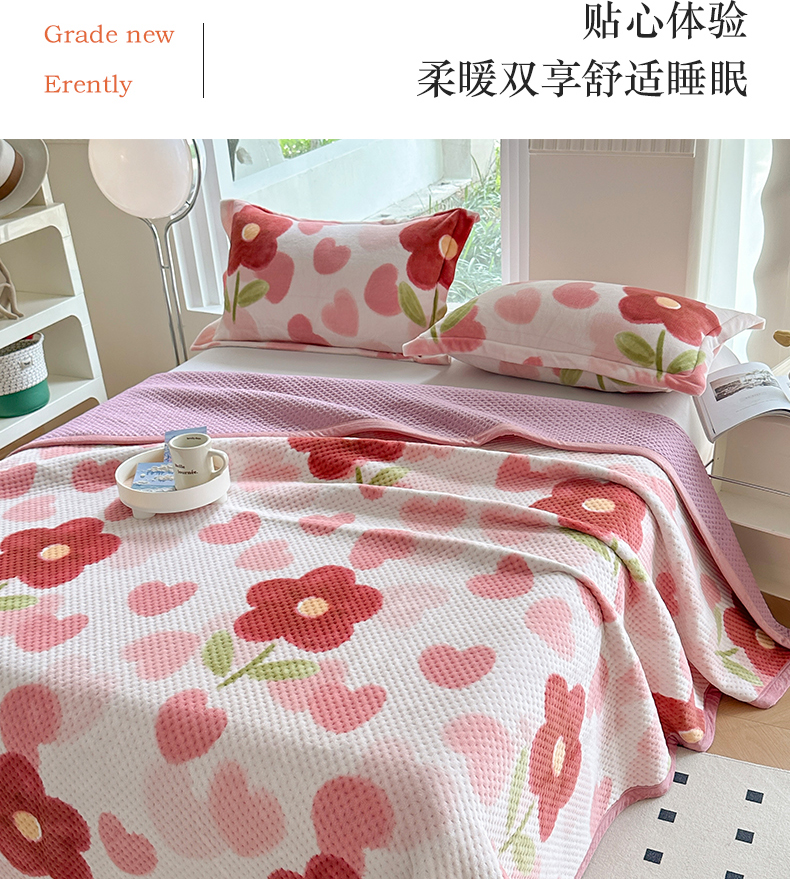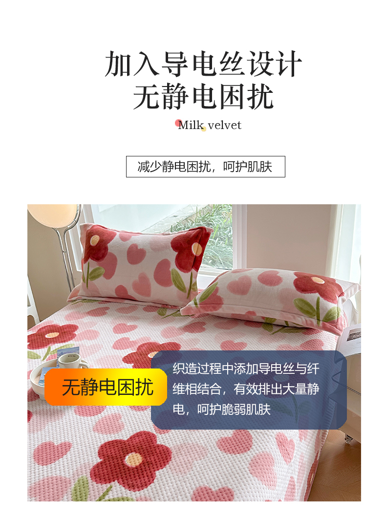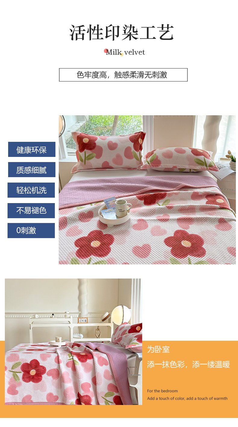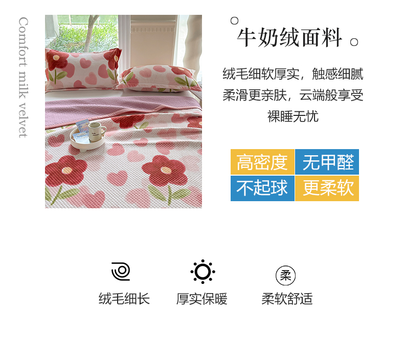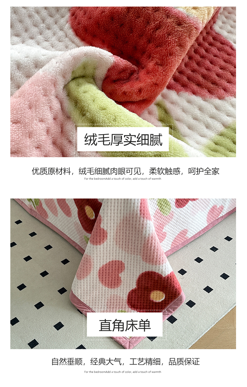 • 91家纺网 家纺一手货源 找家纺 胜权 2024款高克重牛奶绒夹棉单床盖单件保暖床盖三件套 浅浅花香