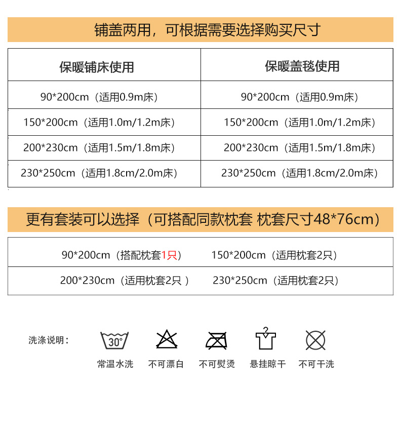 床单/床笠尺寸 7
