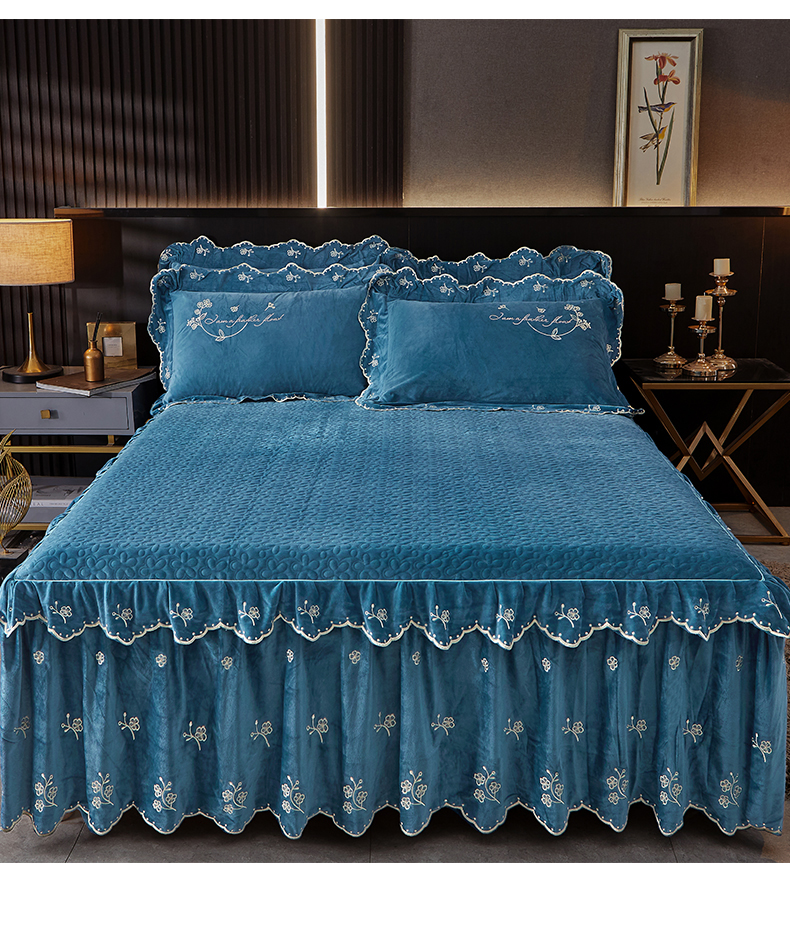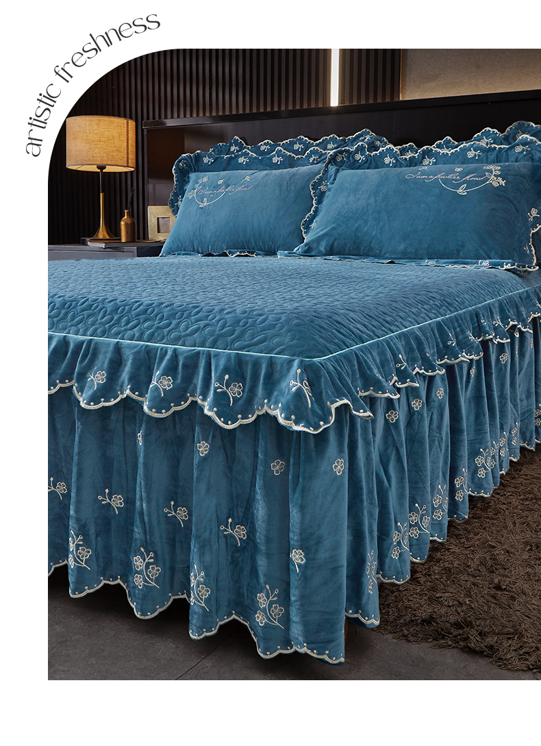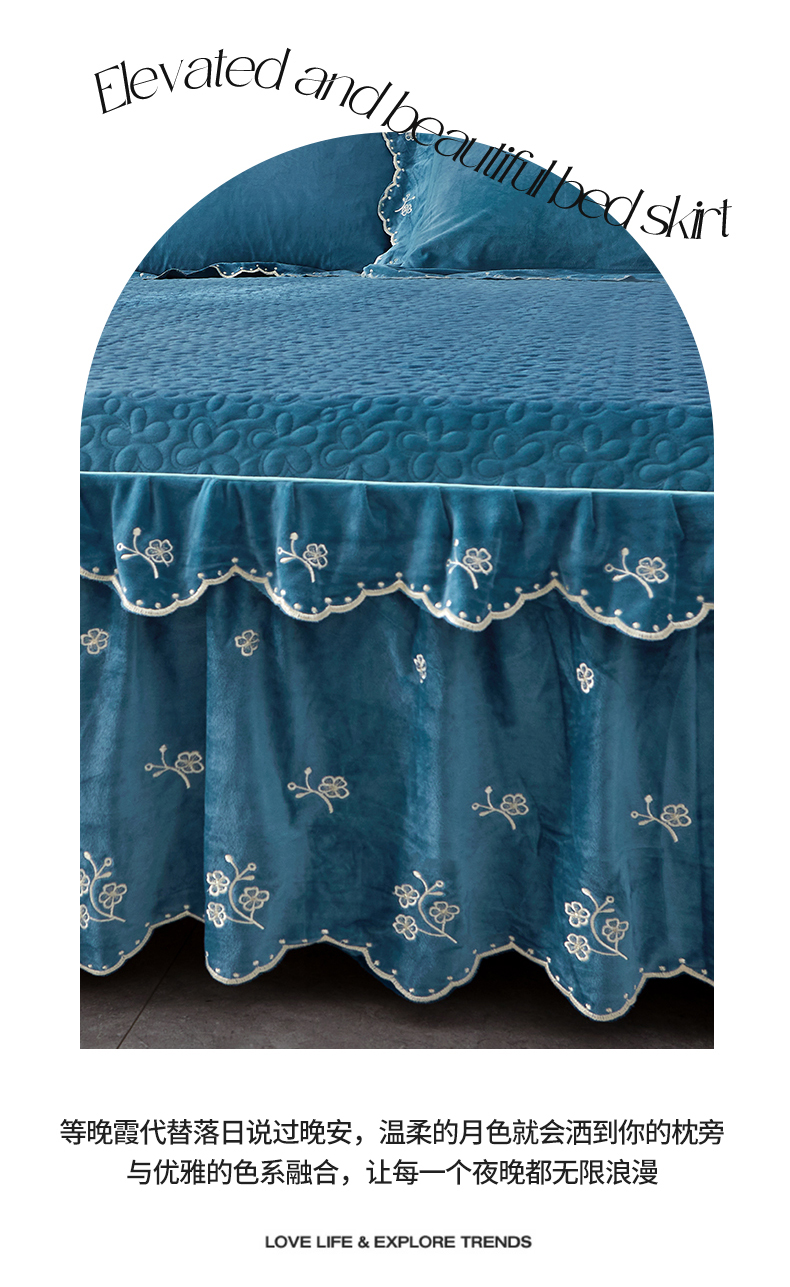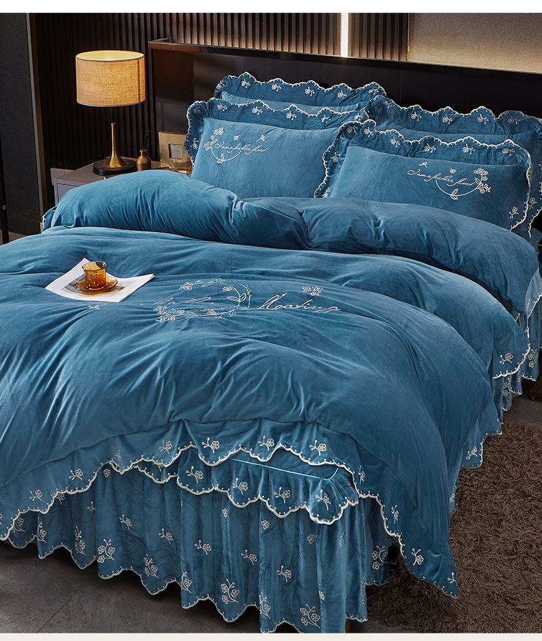 当前位置: 91家纺网 > 商品网购 > 床品套件 > 四件套 > 宝宝绒四件套 > 2023 恒爱家纺 花好月圆宝宝绒床裙四件套 宝利蓝