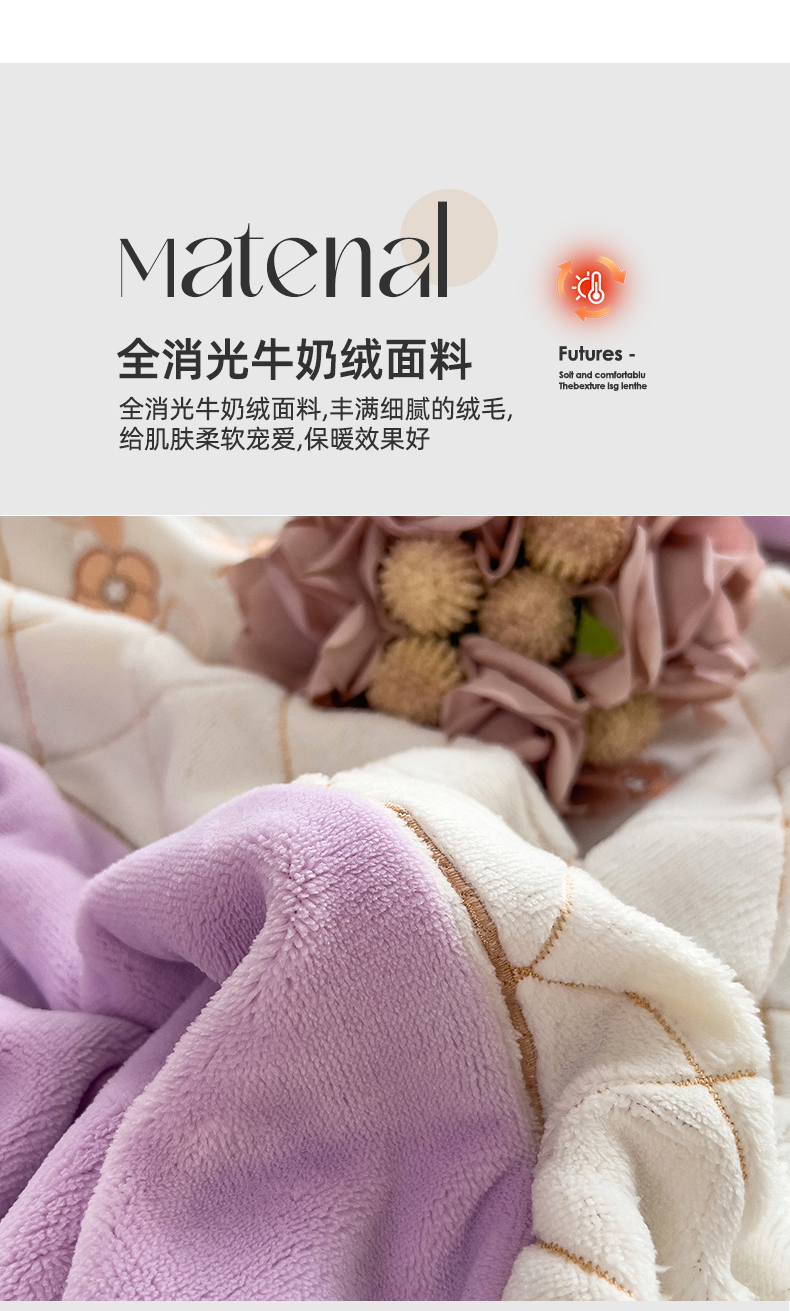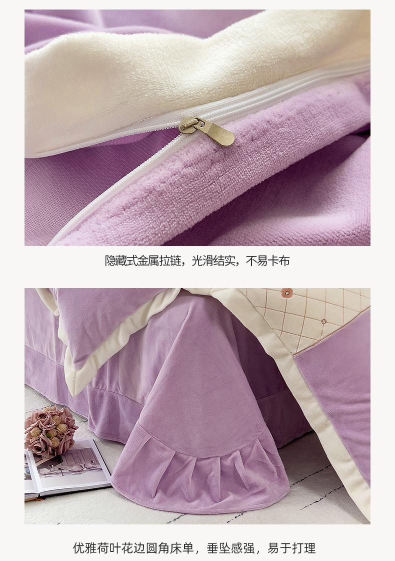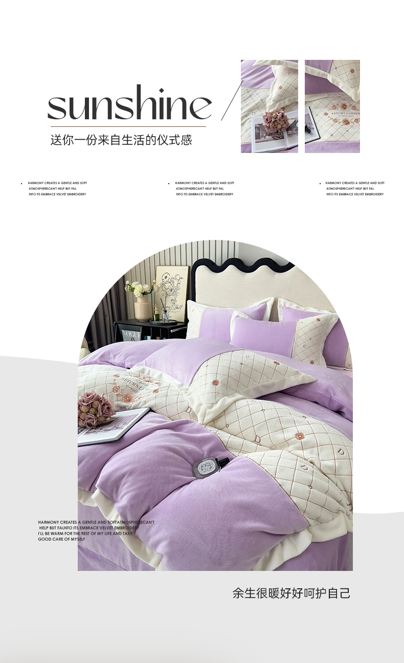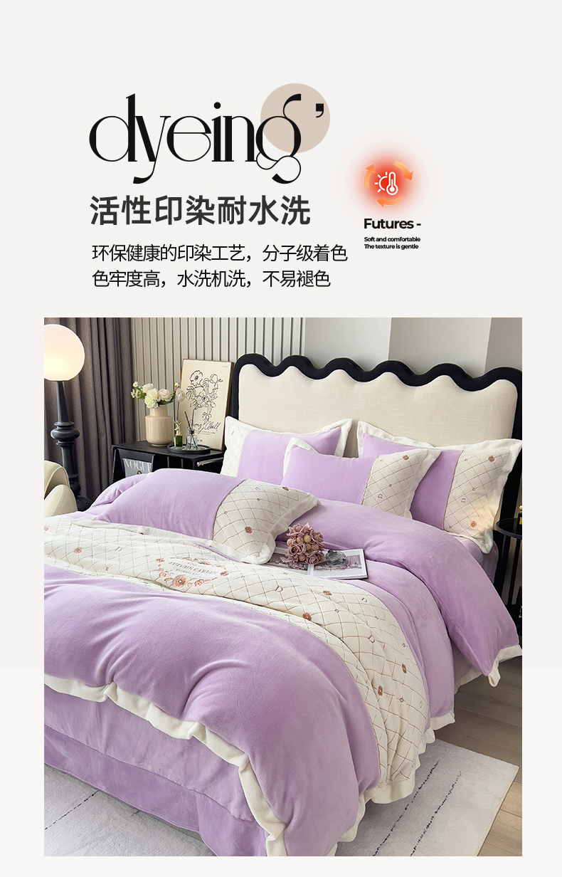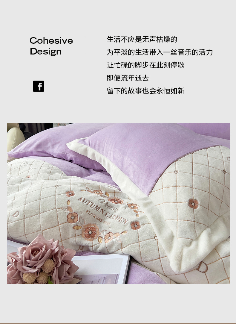 绒世界 2024秋冬高端刺绣菲曼牛奶绒四件套 菲曼-丁香紫