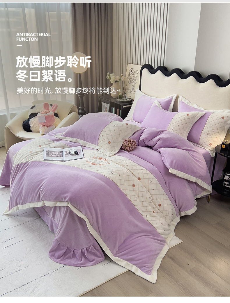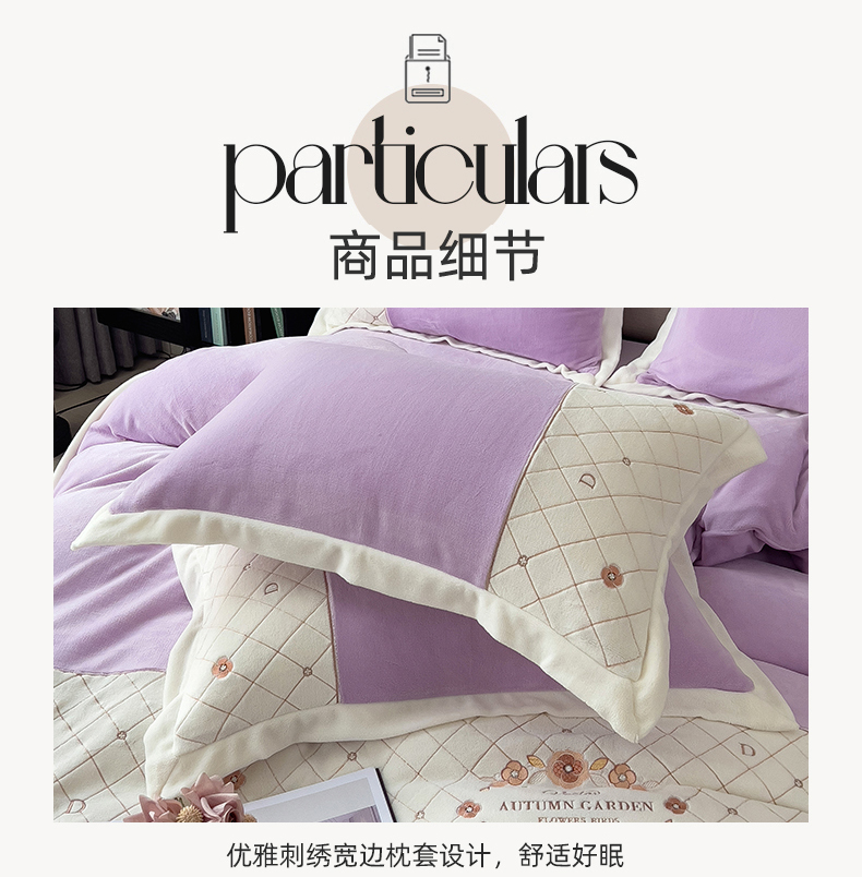 商品名称:绒世界 2024秋冬高端刺绣菲曼牛奶绒四件套 菲曼-丁香紫