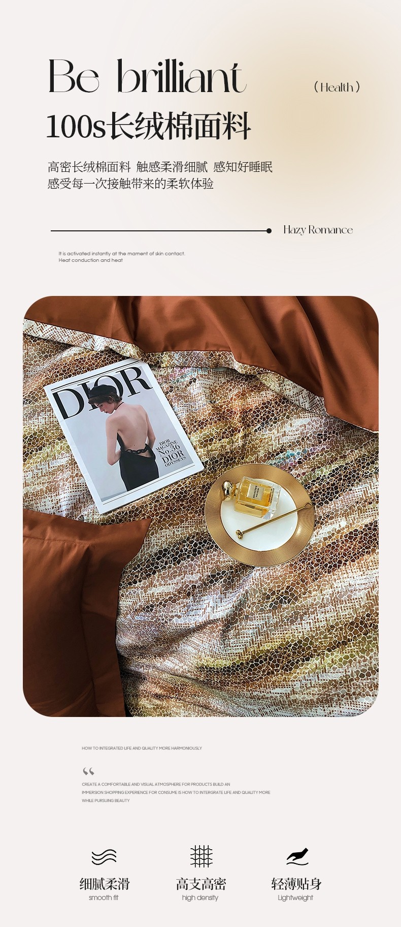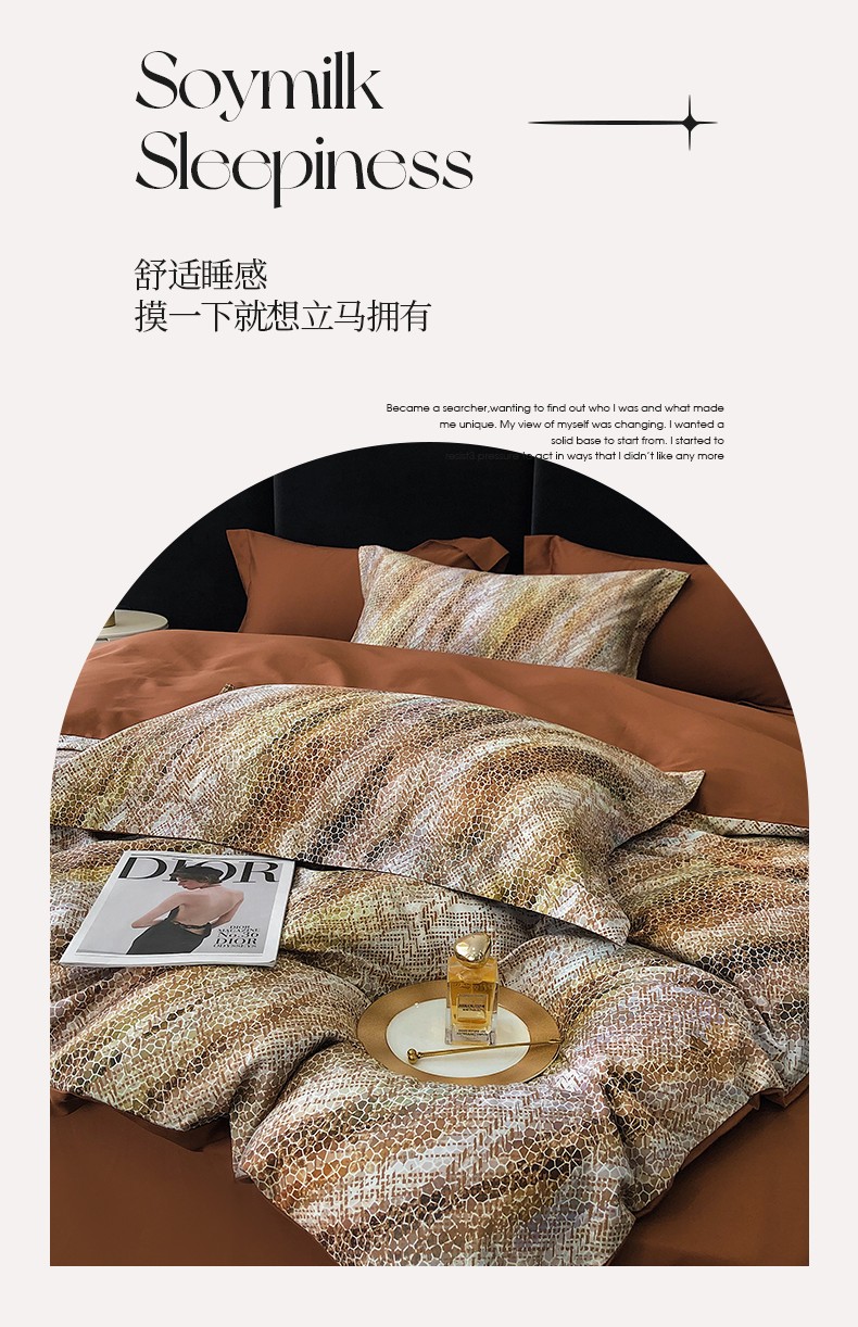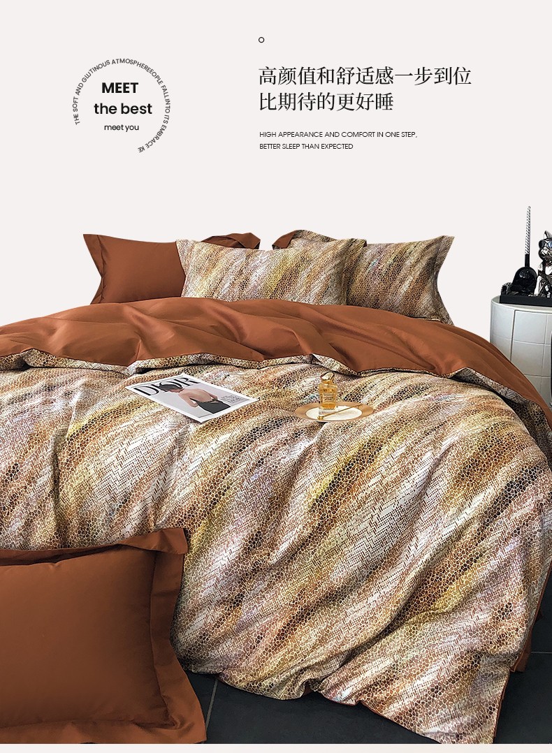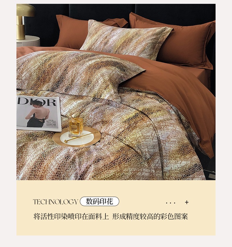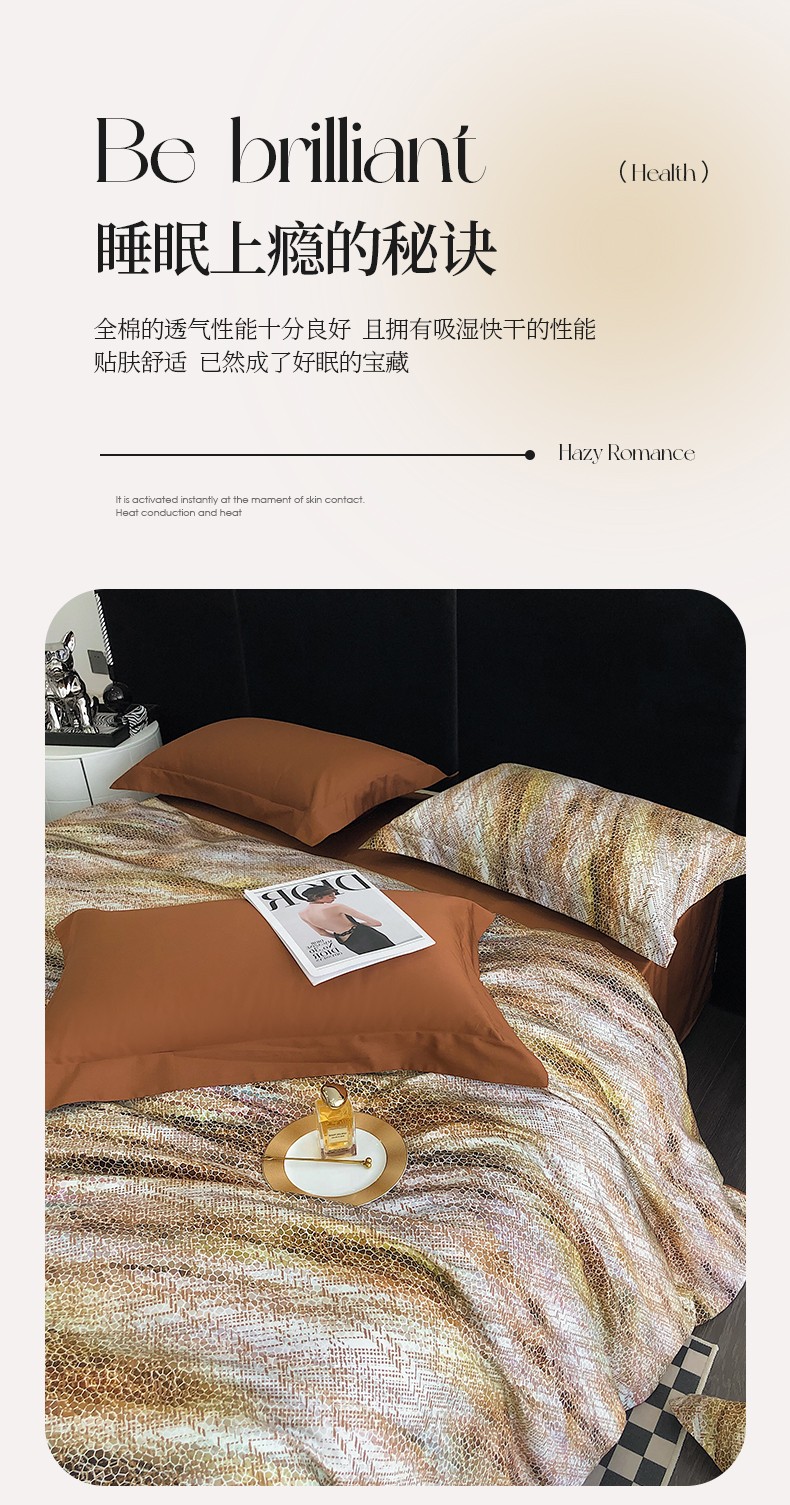 商品名称:红馆 2003新款轻奢高支棉臻品100支数码印花四件套--简约款 时空