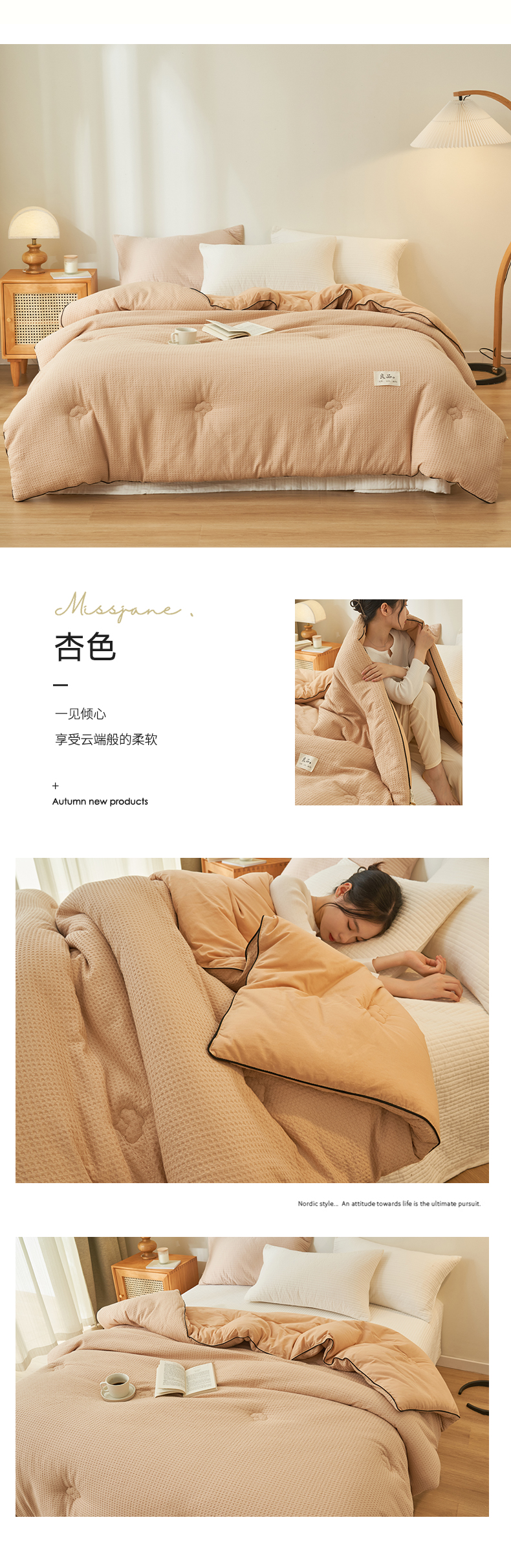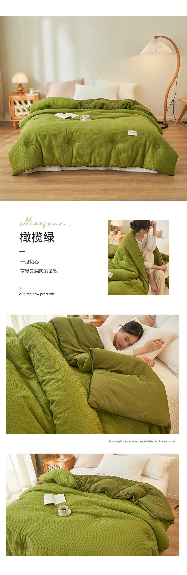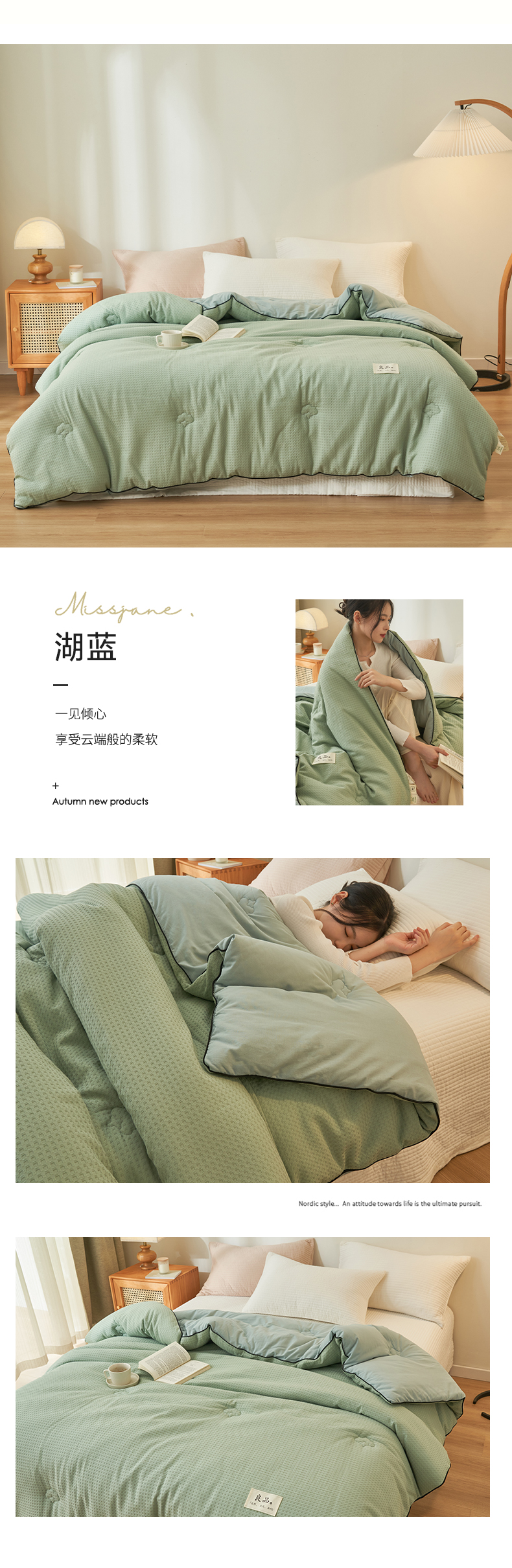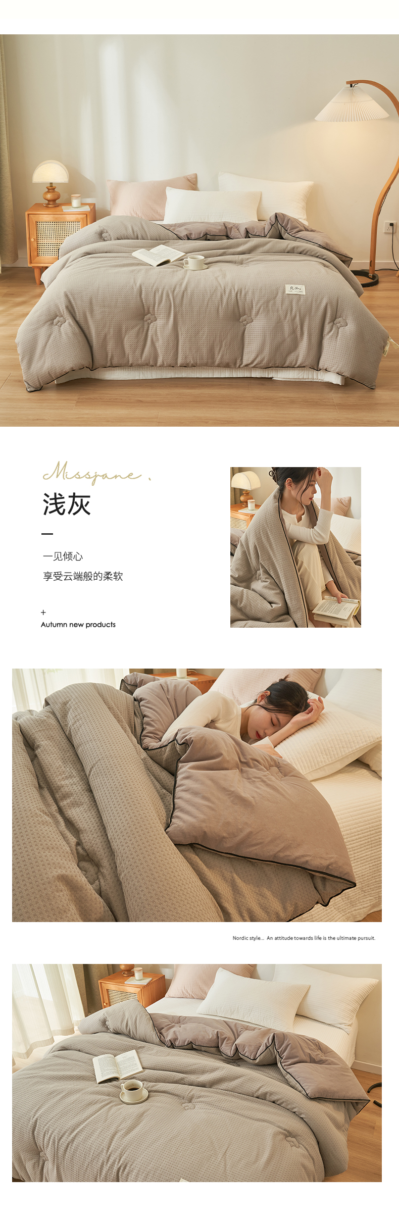 (总)子由家居 2025新款良品格大豆子母冬被被子被芯,子母被-白+灰,子母被-白+绿,子母被-白+杏,子母被-灰+驼