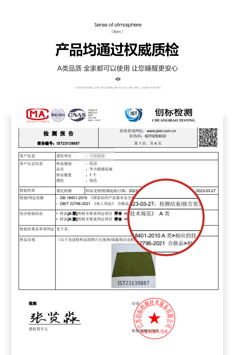 4、通州区市场监管局川姜分局友情提醒:近期针对抗静电,无静电,抗菌防螨,及有关舒适度,百分比的举报高发。为不影响商品正常销售,请各商家高度重视,自检自查及时整改,谢谢配合!