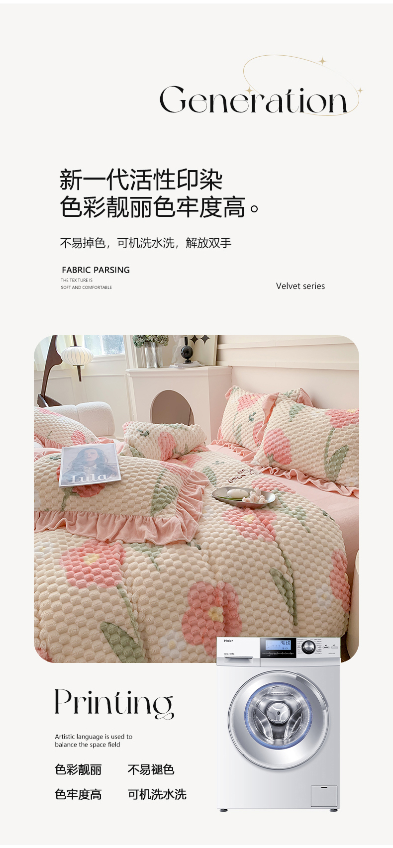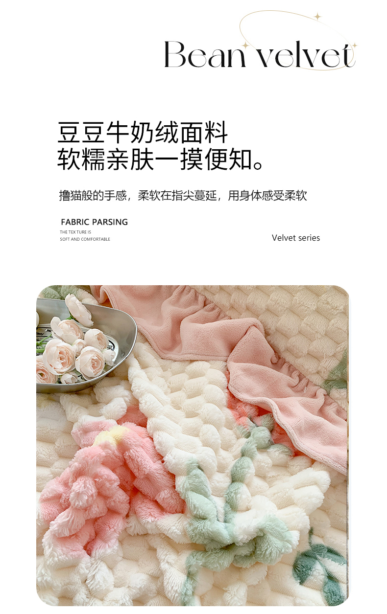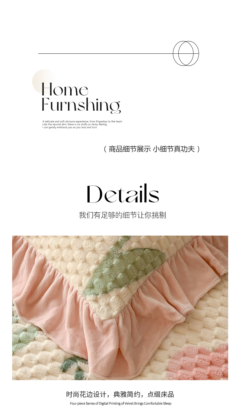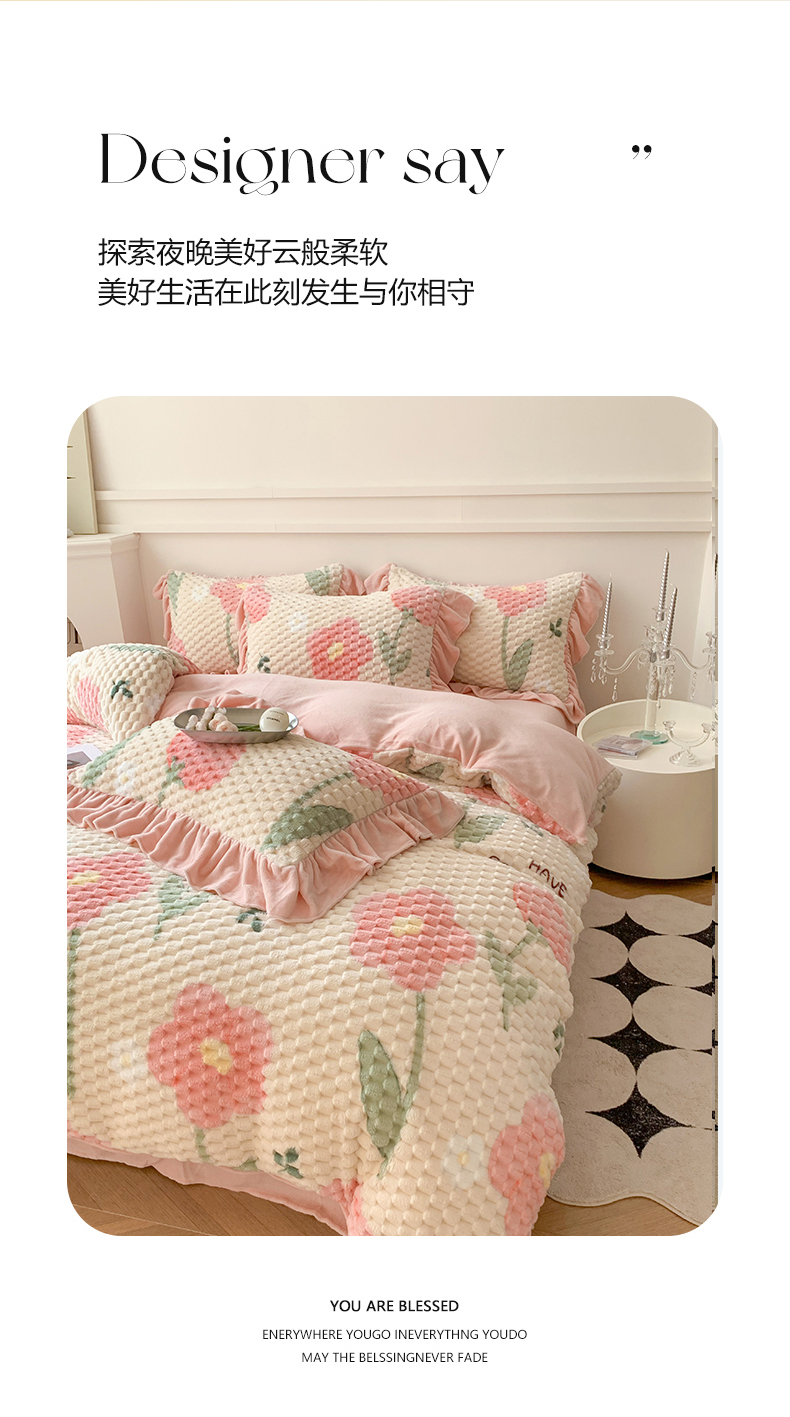 (总)潘朵拉 2023年新款豆豆绒花边牛奶绒四件套,仙芽,兰溪,半眠,向晚,小奶兔,樱桃丸子,粉萝,紫烟,花城,薄荷味,青雅