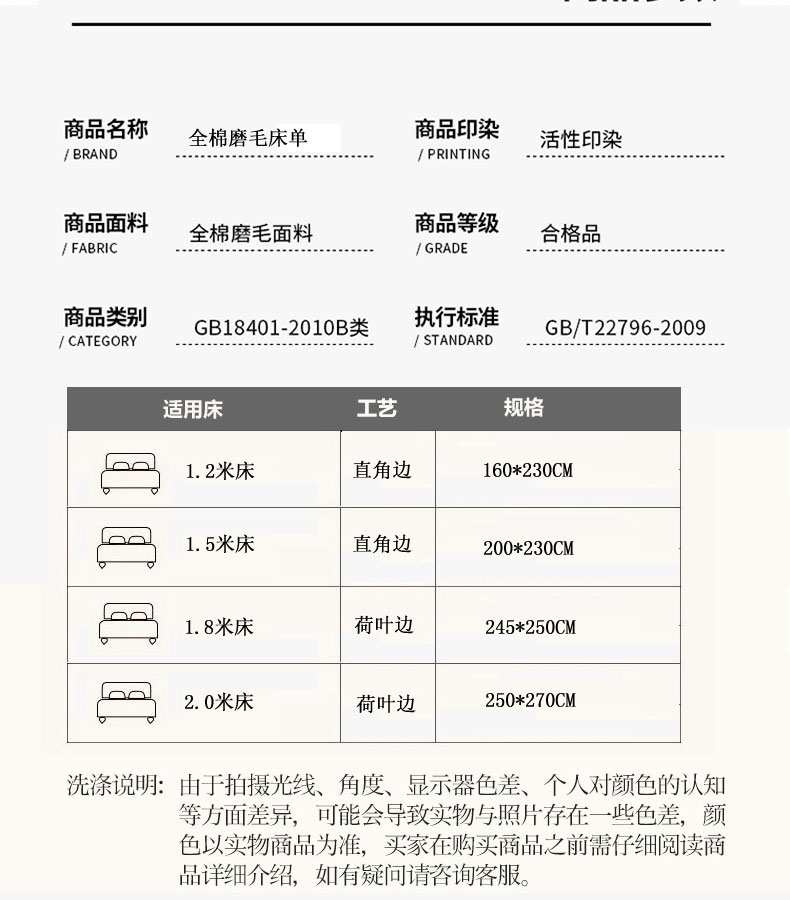 160*230cm单床单