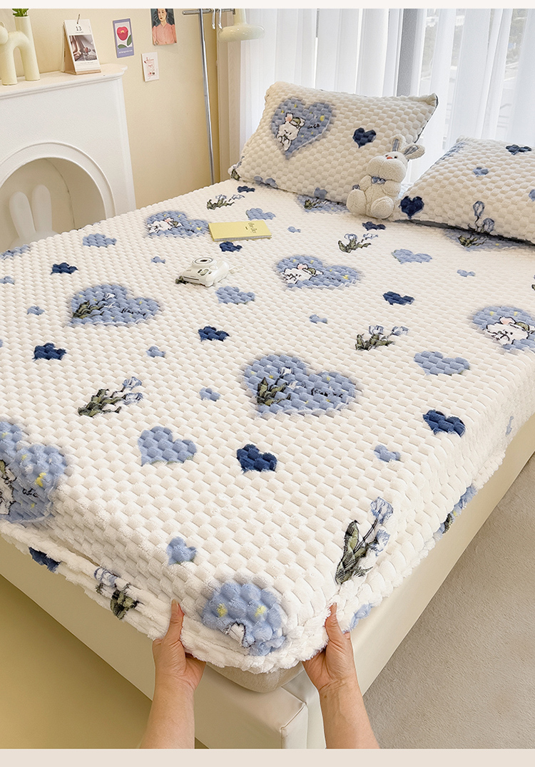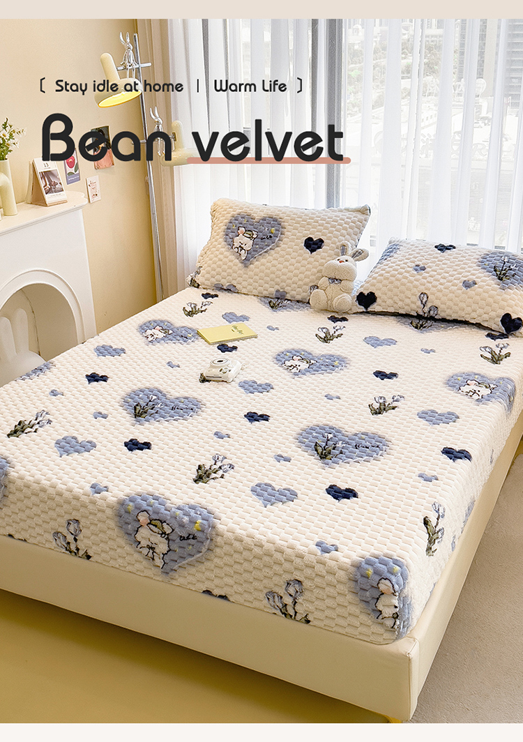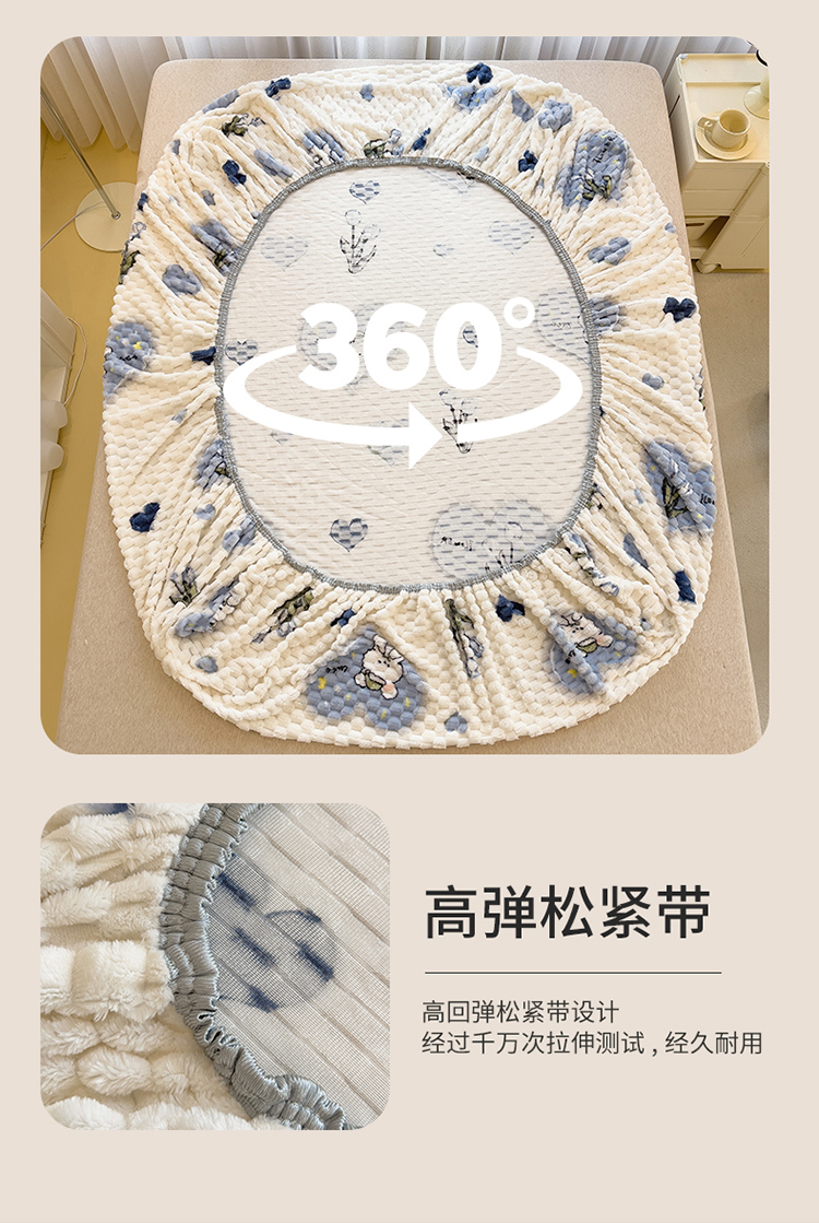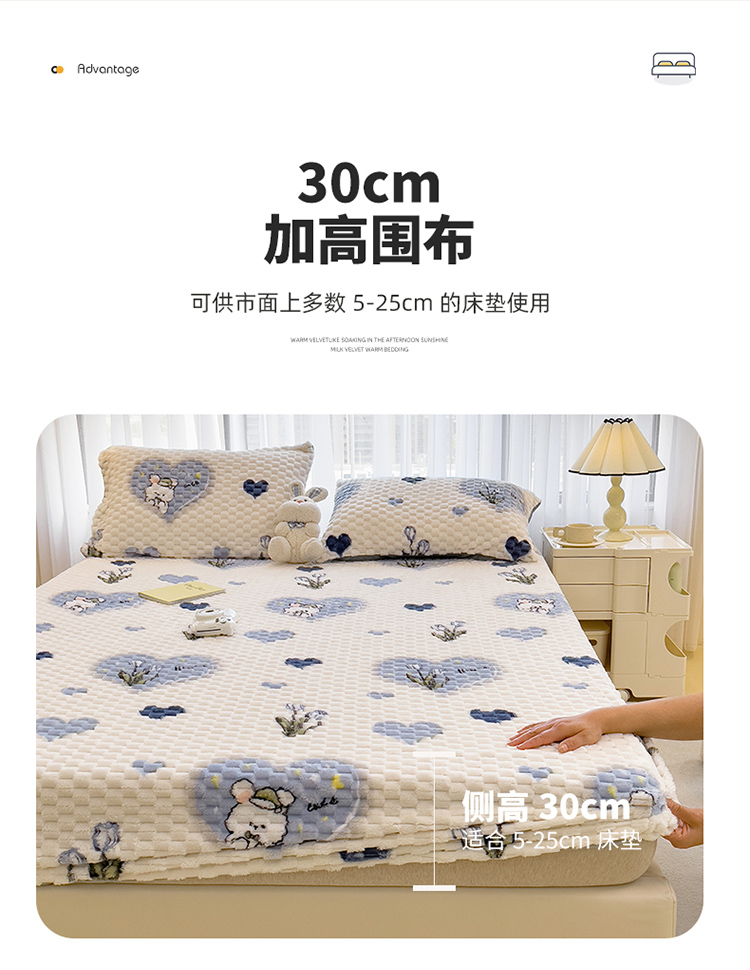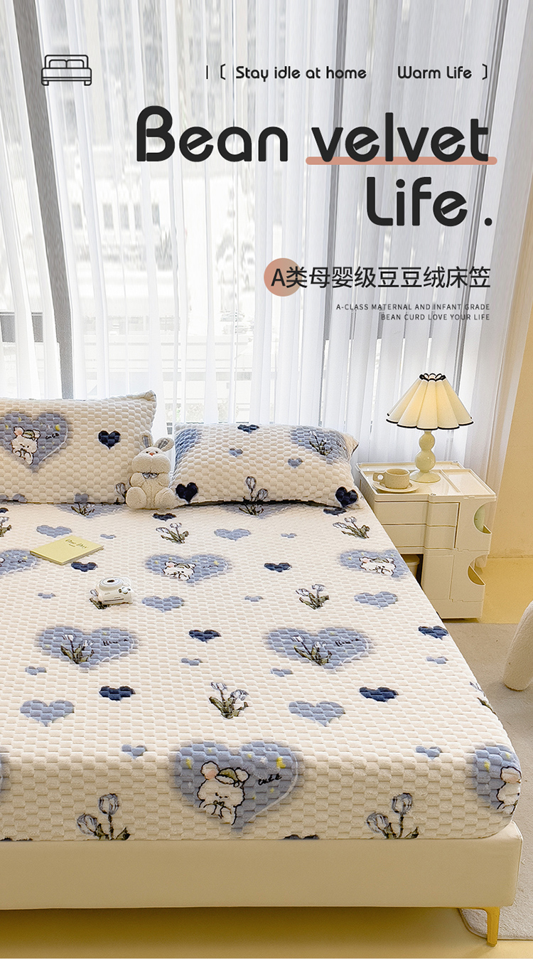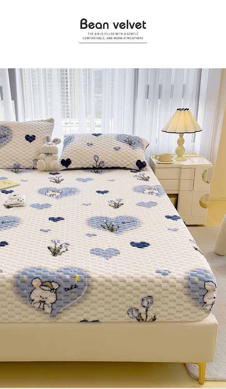 丝幔家纺 2025新款 豆豆绒床笠 爱心兔