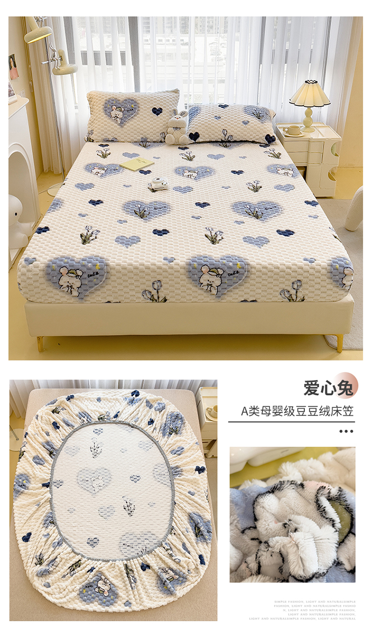 商品名称:丝幔家纺 2025新款 豆豆绒床笠 爱心兔