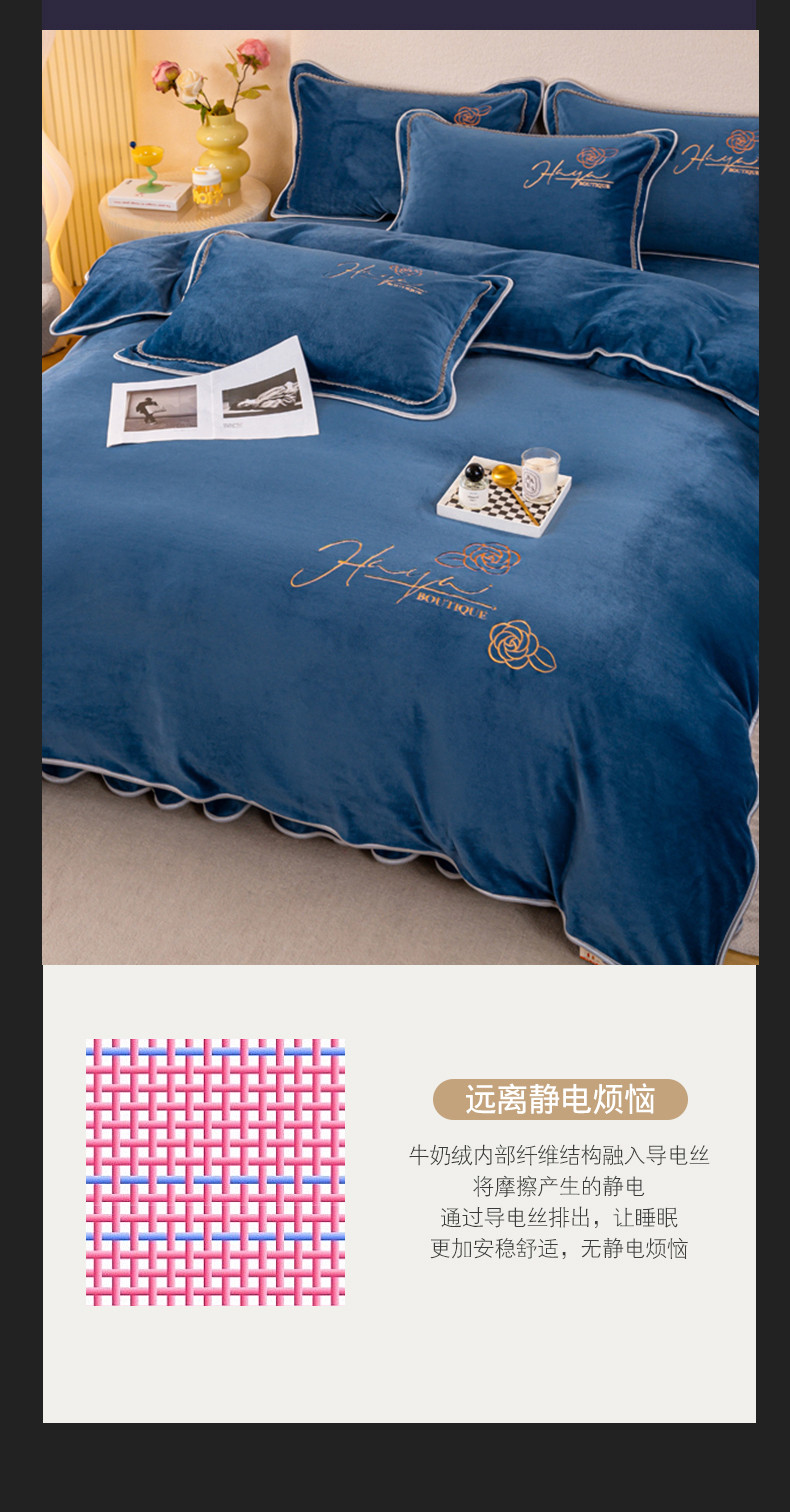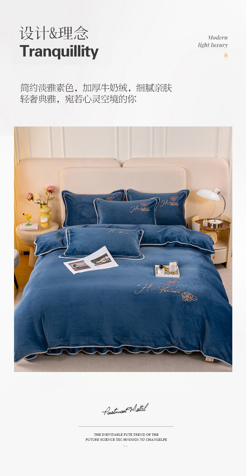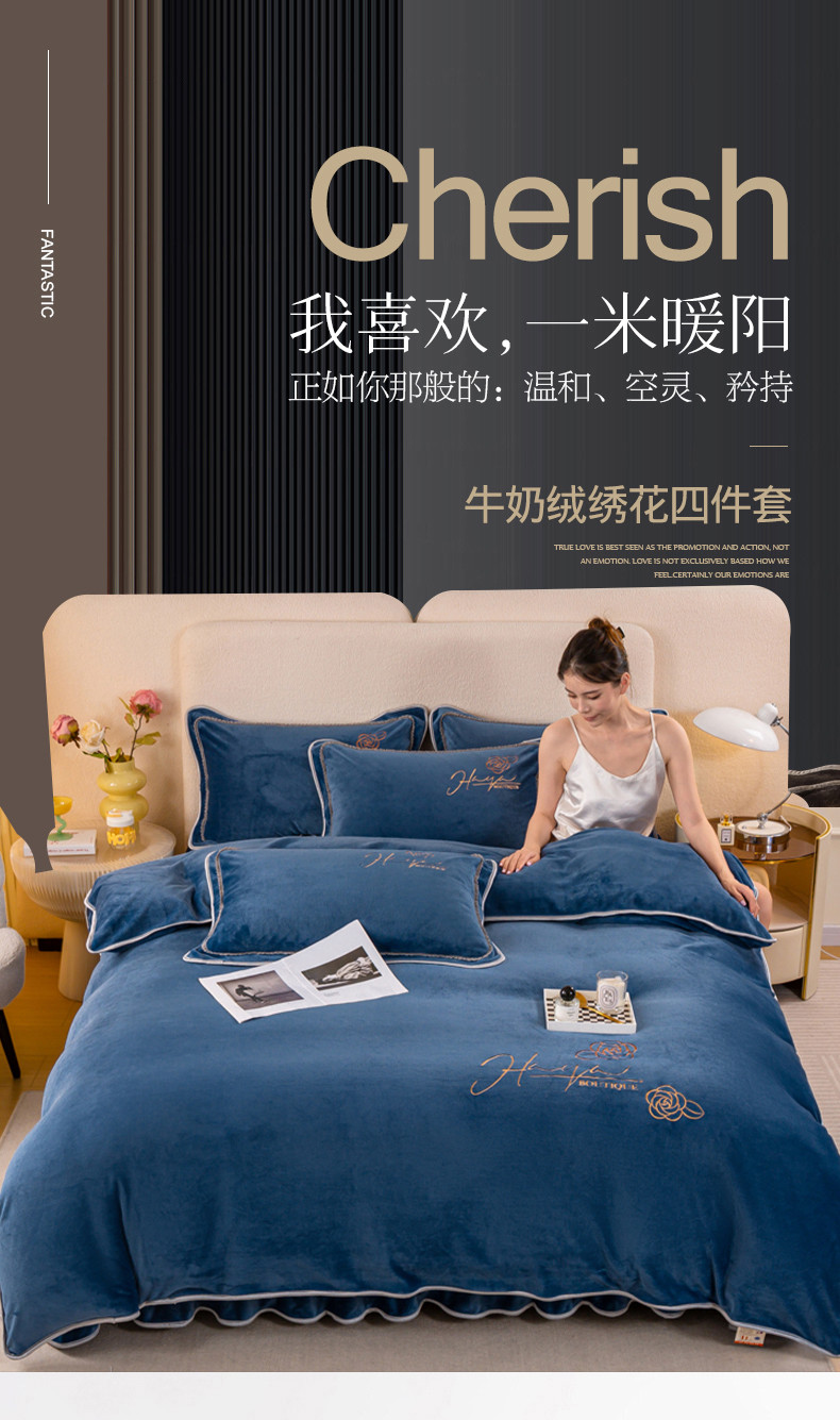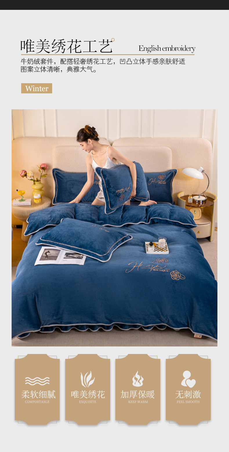 商品名称:博兰蒂2023新款绣花牛奶绒四件套-水仙花系列 水仙子-蓝