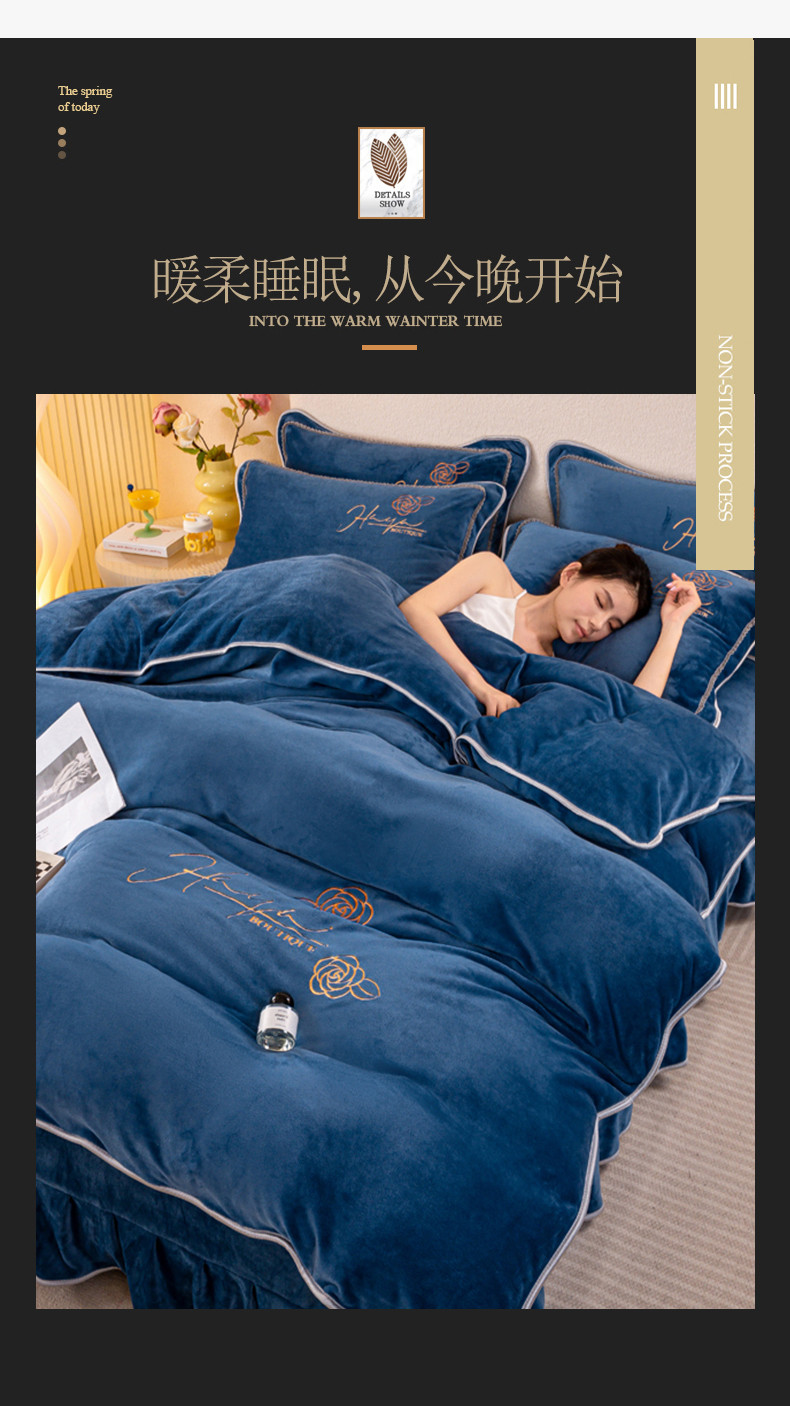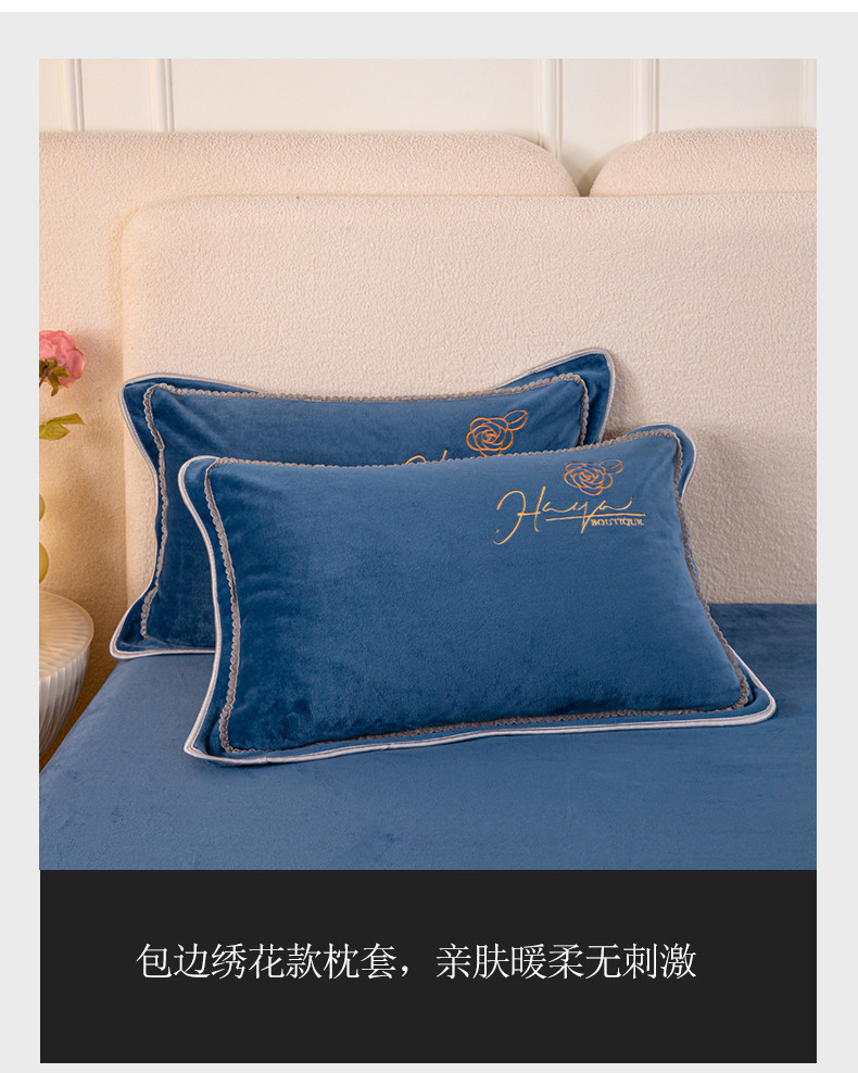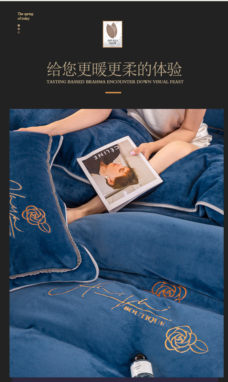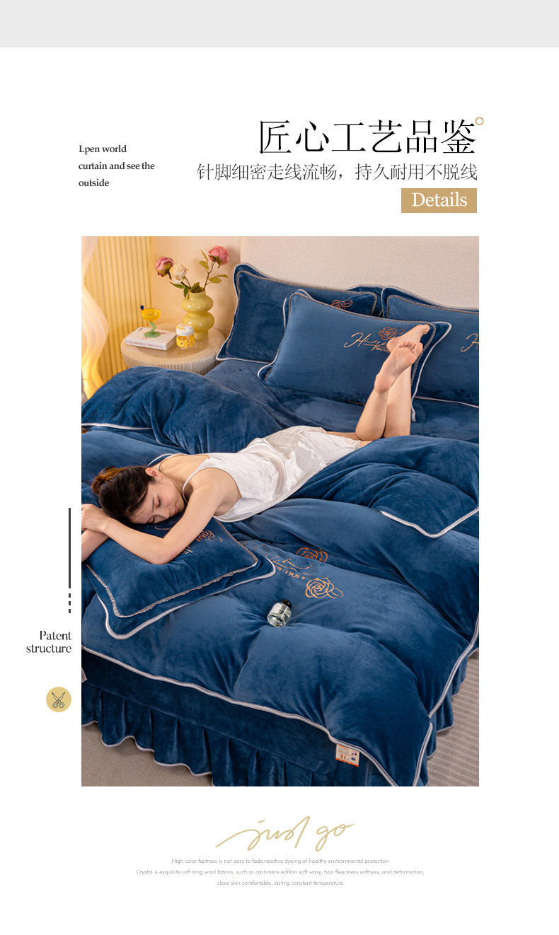 商品名称:博兰蒂2023新款绣花牛奶绒四件套-水仙花系列 水仙子-蓝