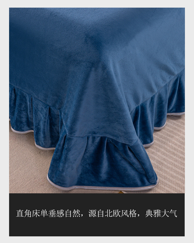 博兰蒂 2025秋冬新款高克重纯色牛奶绒床裙款四件套墨紫,墨紫
