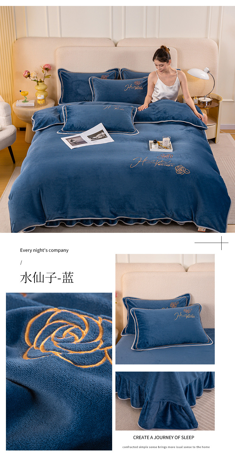博兰蒂2023新款绣花牛奶绒四件套-水仙花系列 水仙子-蓝