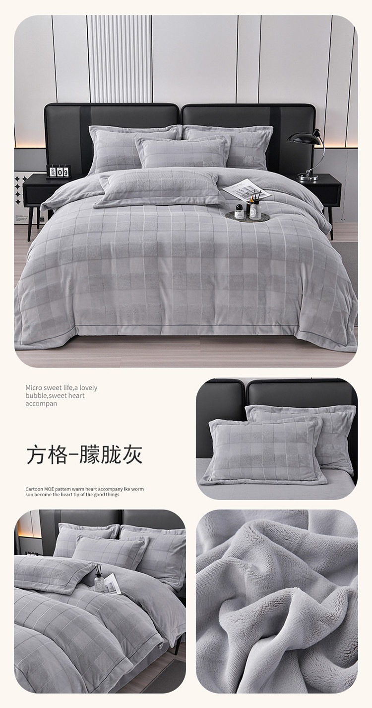商品名称:席之家 2023加厚保暖立体剪花方格兔毛绒四件套-简爱款 方格-朦胧灰