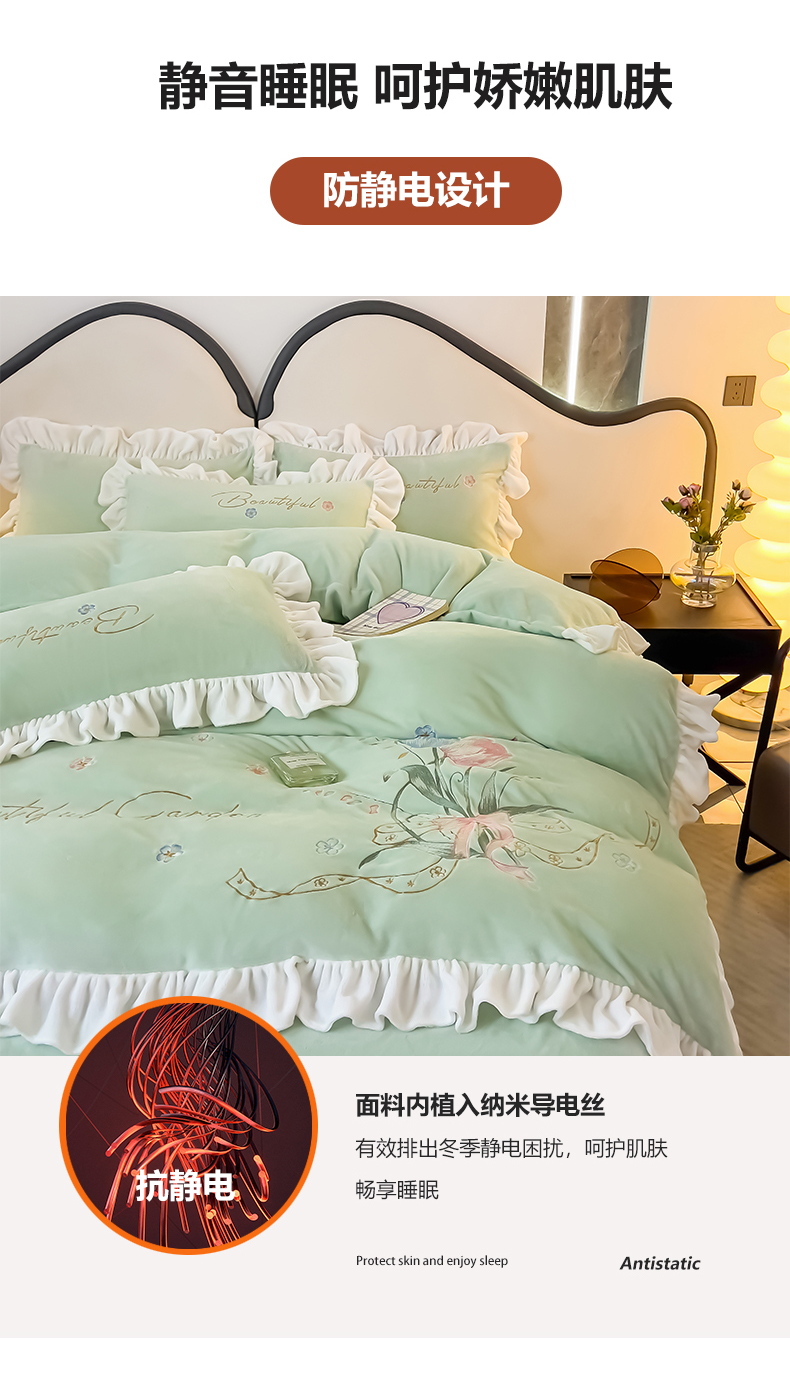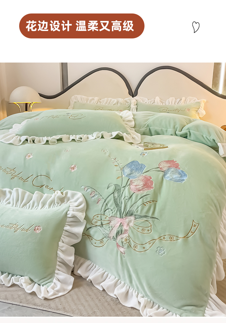 (总)凯美家居 2025新款A类牛奶绒蕾丝刺绣四件套-锦上添花,锦上添花-浅绿,锦上添花-粉玉,锦上添花-奶白,锦上添花-浅黄,锦上添花-浅蓝,锦上添花-浅紫