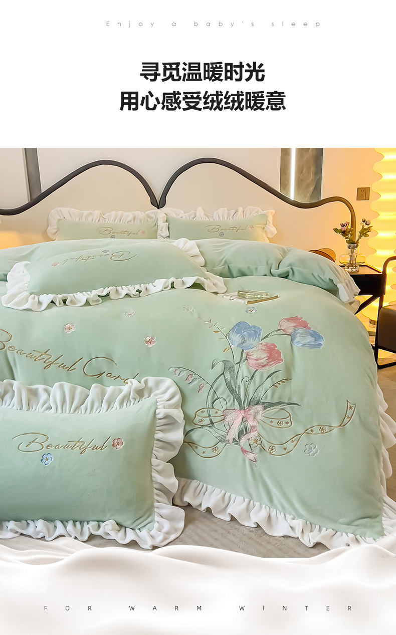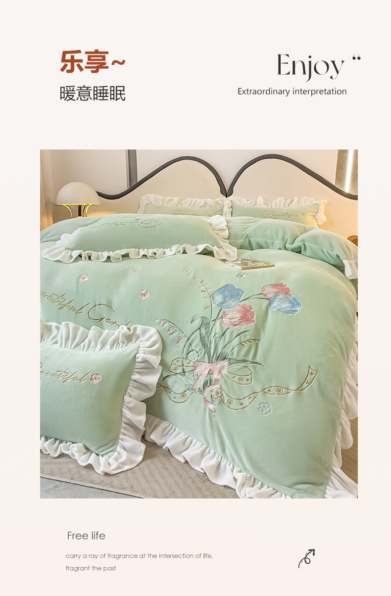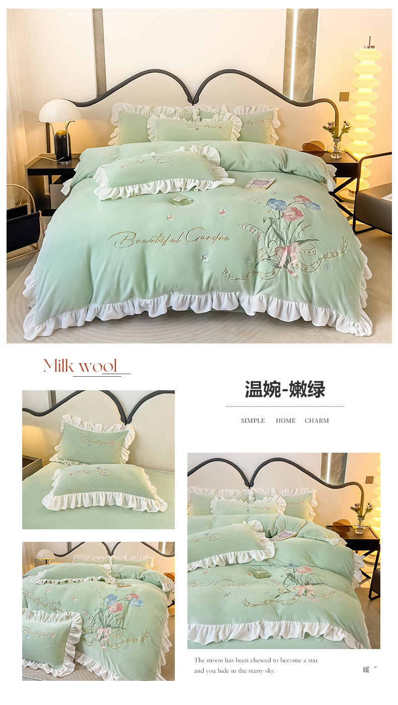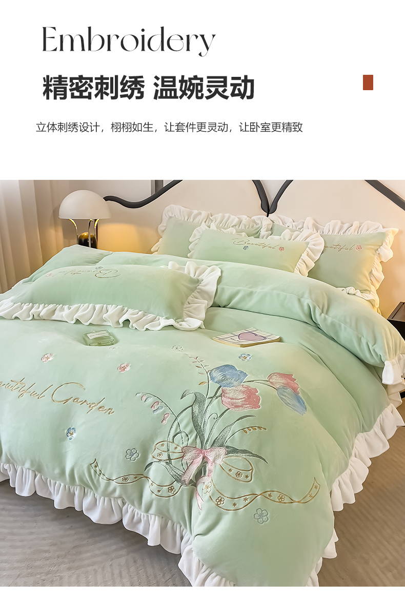 凯美家居 2023新款牛奶绒刺绣四件套 温婉 嫩绿