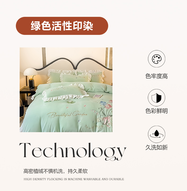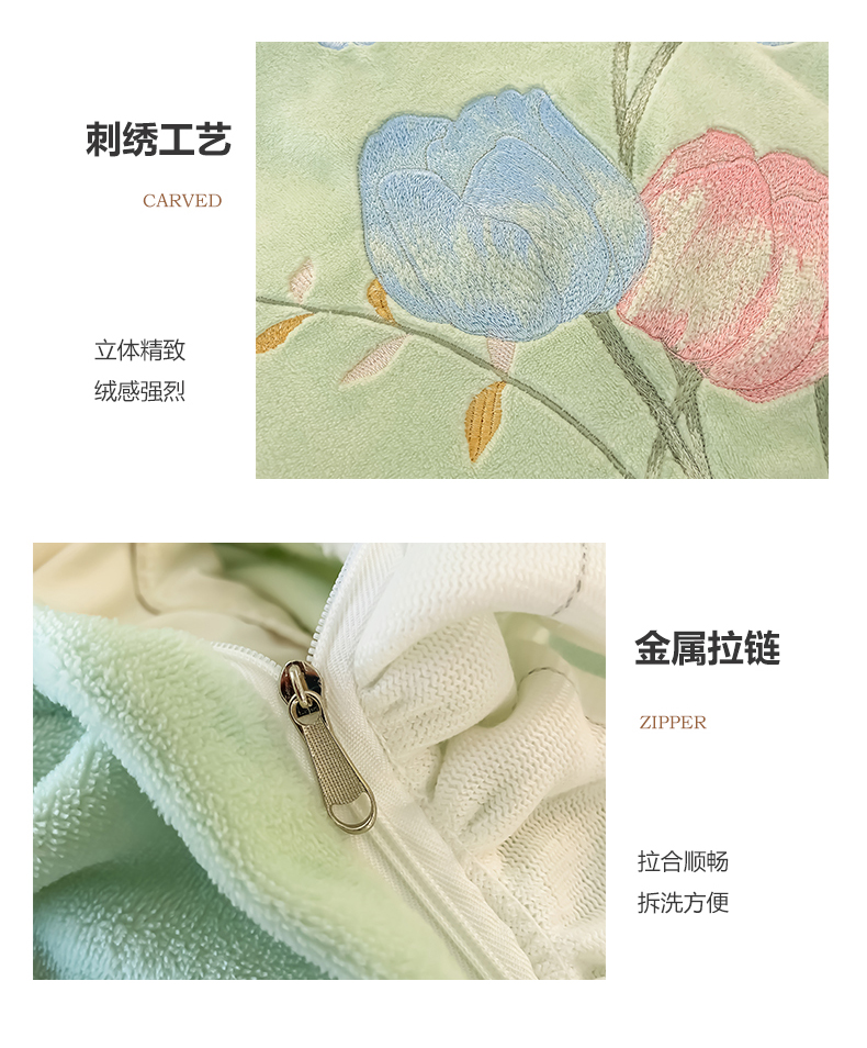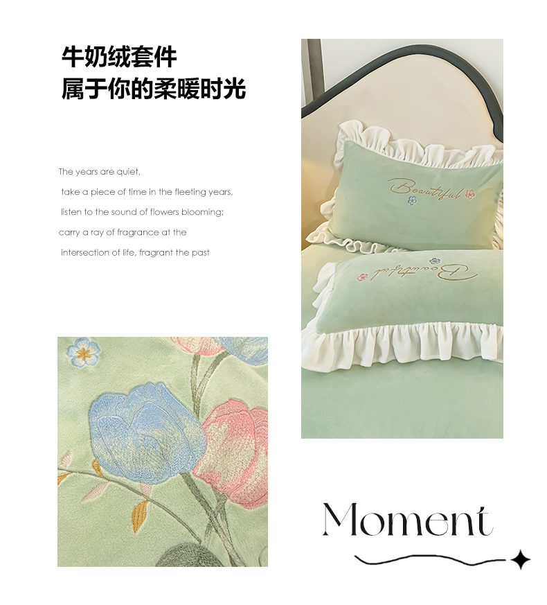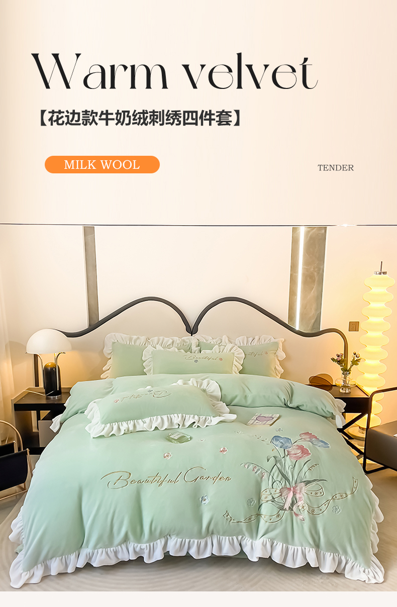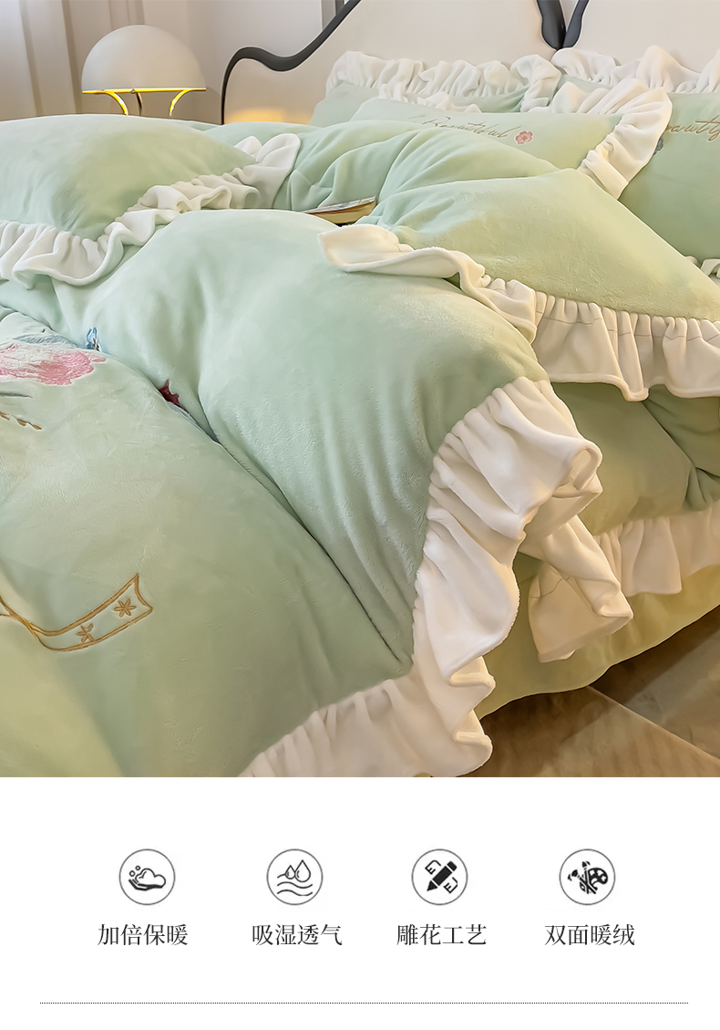 凯美家居 2023新款牛奶绒刺绣四件套 温婉 嫩绿