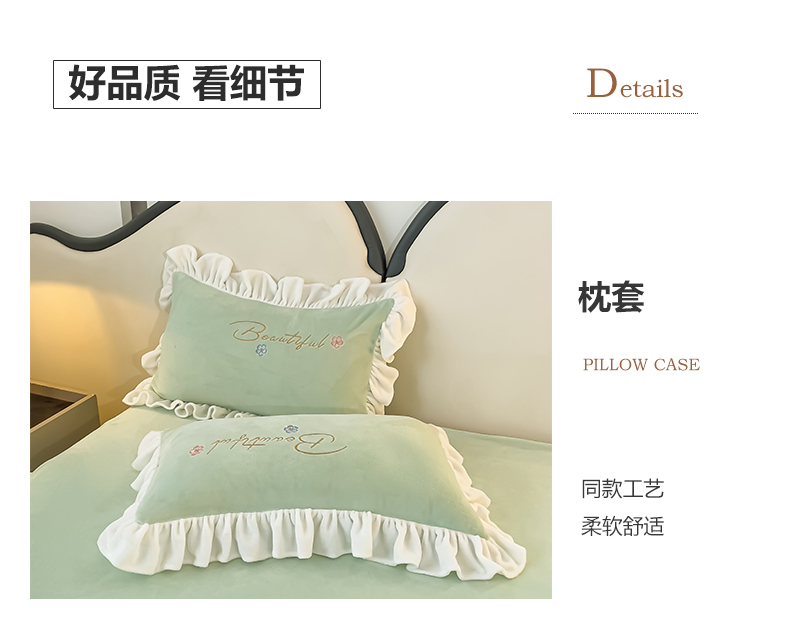 商品名称:凯美家居 2023新款牛奶绒刺绣四件套 温婉 嫩绿