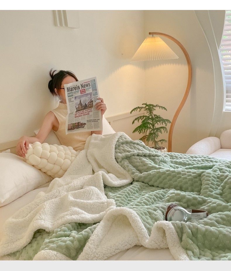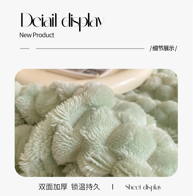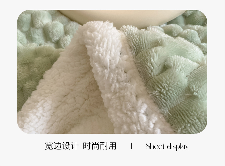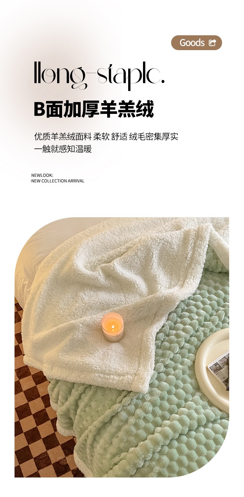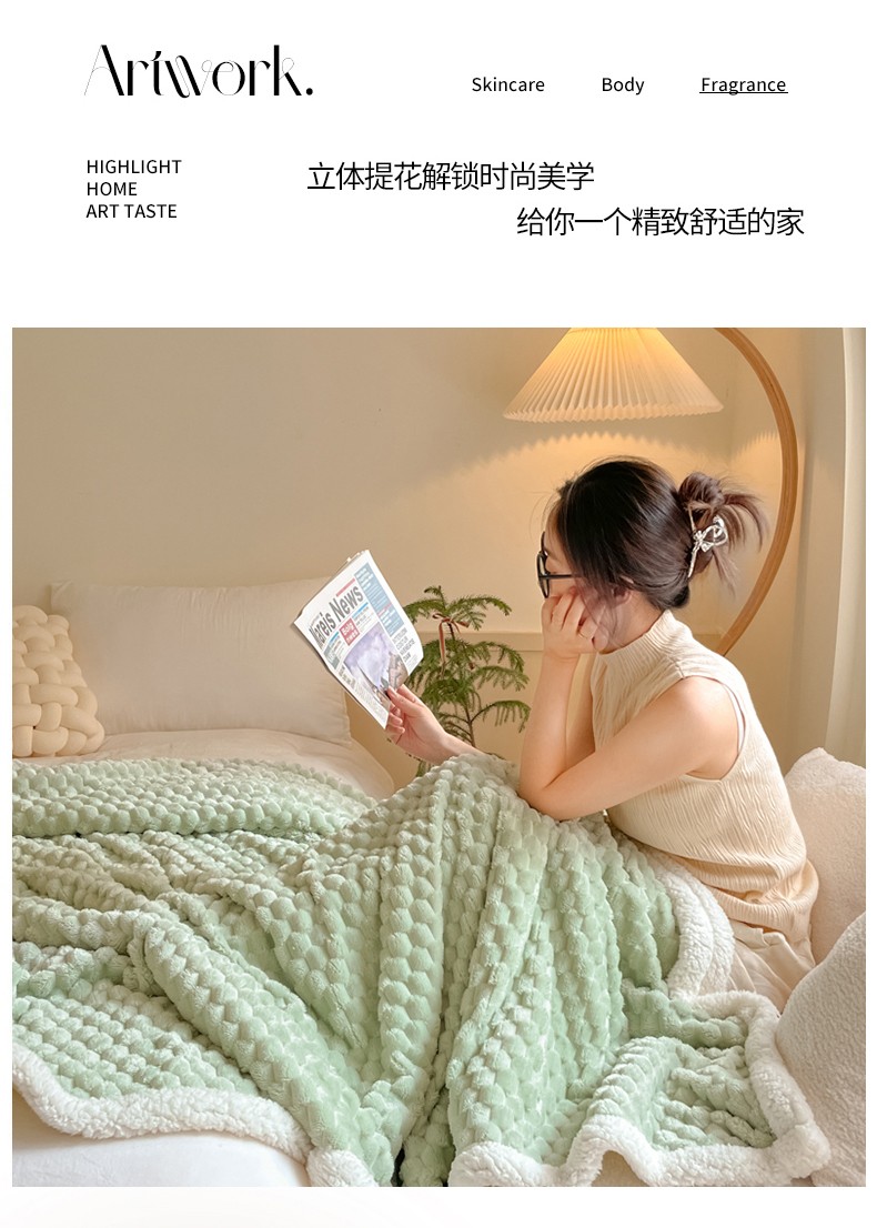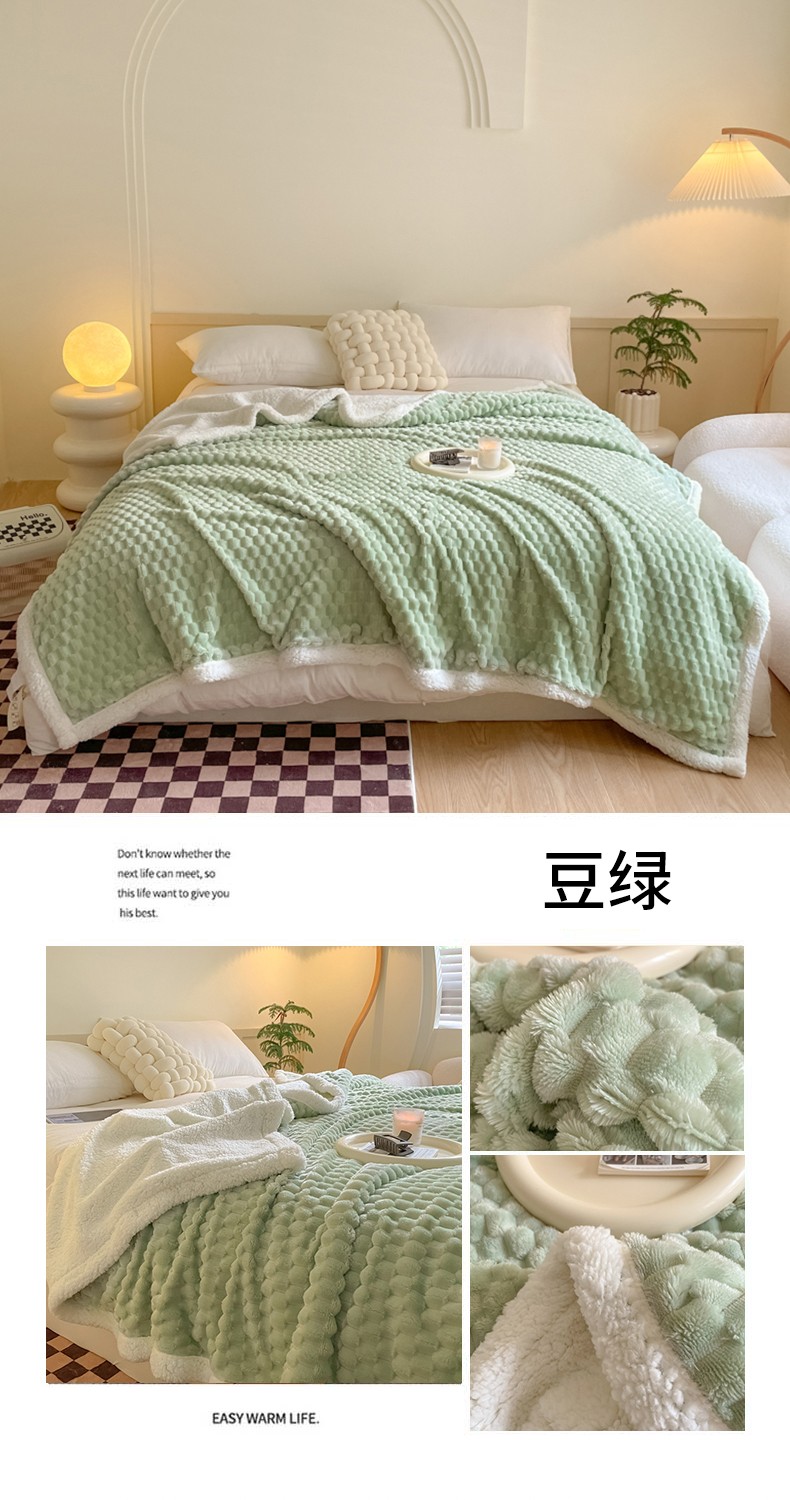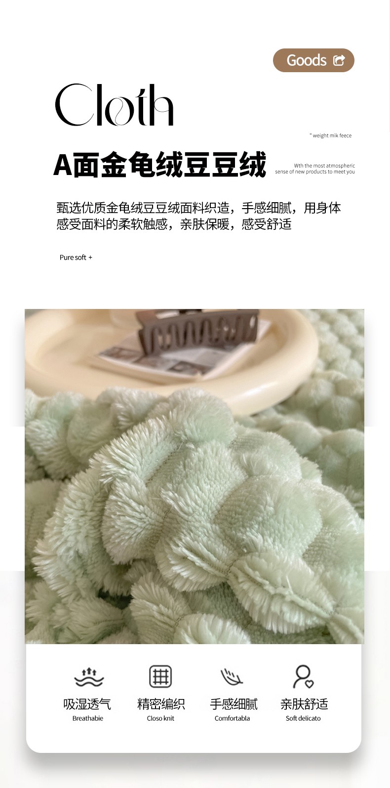 商品名称:欧邦 新款A类金龟绒提花豆豆绒毯子羊羔绒双层毛毯 豆绿