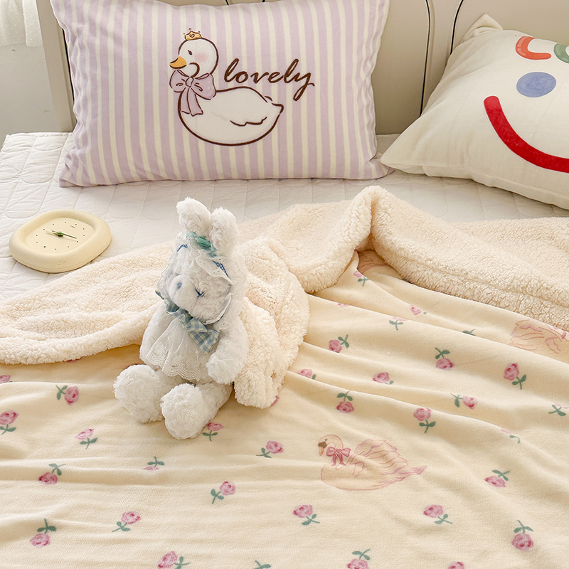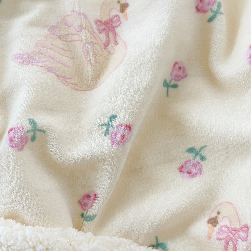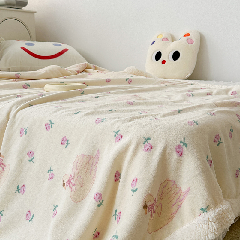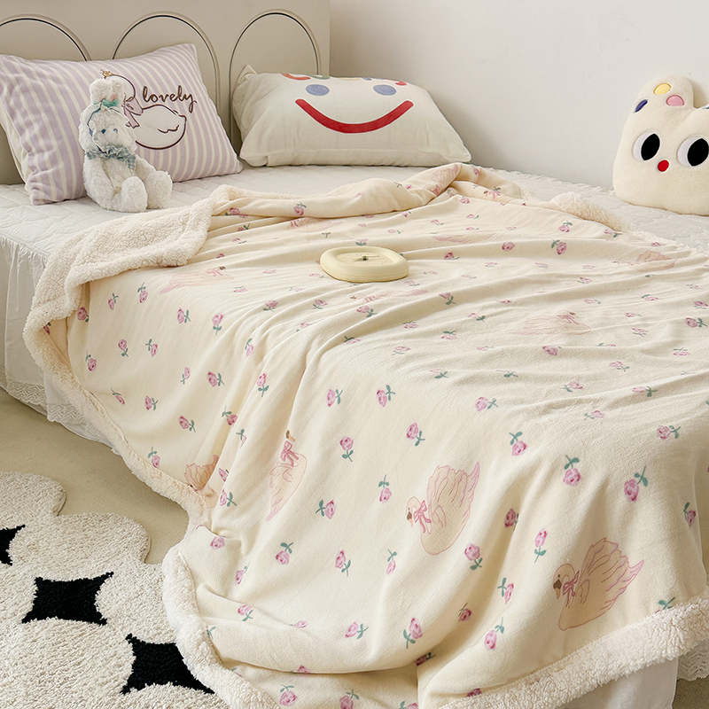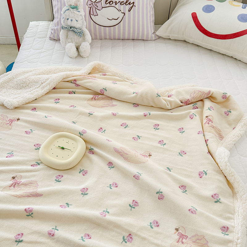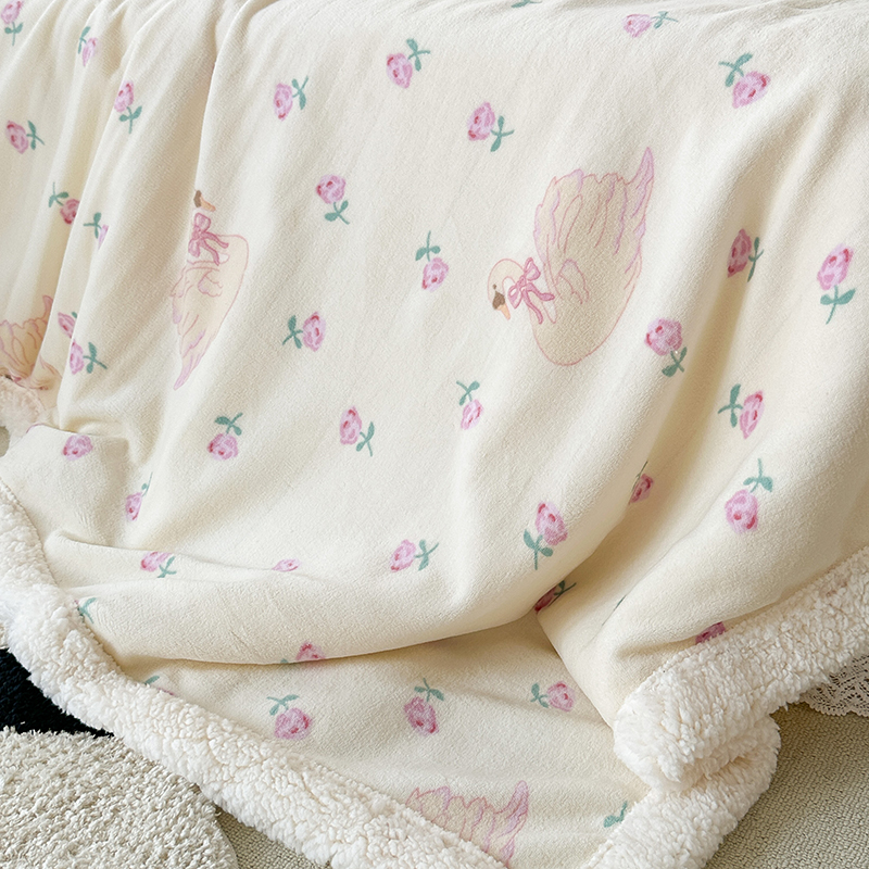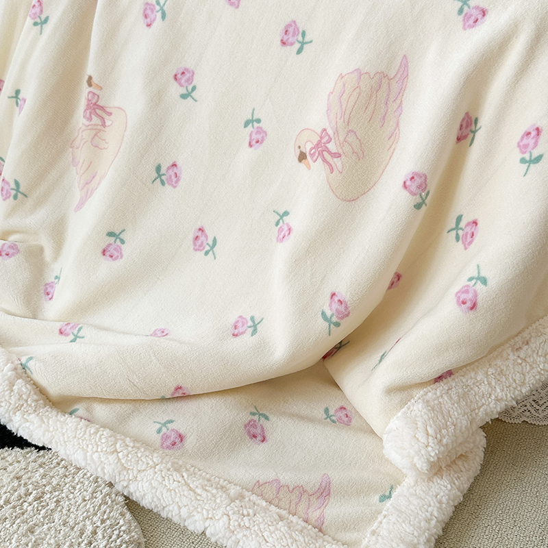 昔可家纺 2023新款ins风牛奶绒羊羔绒印花毛毯(风格一) 天鹅玫瑰