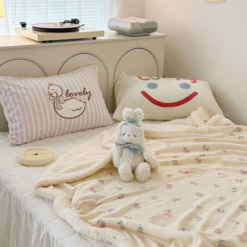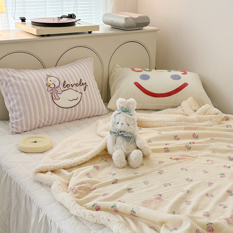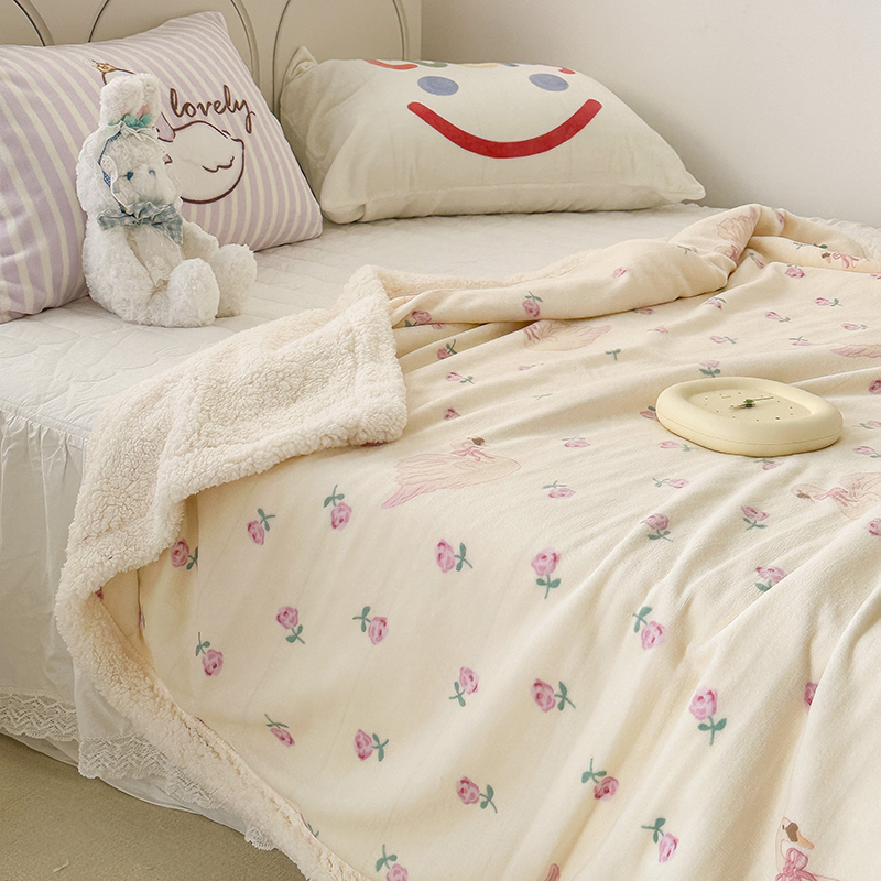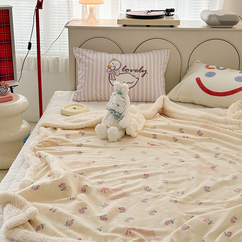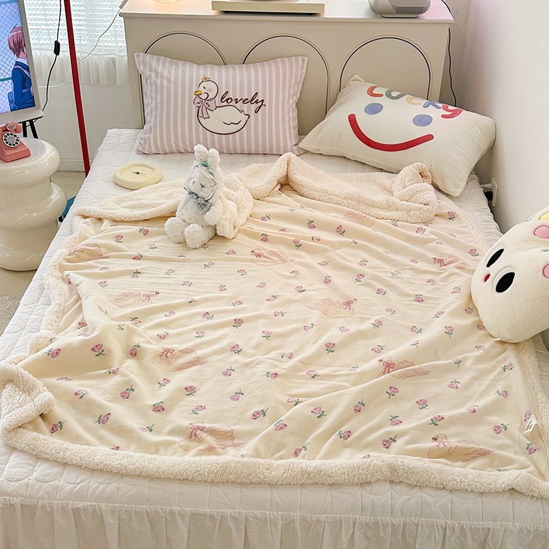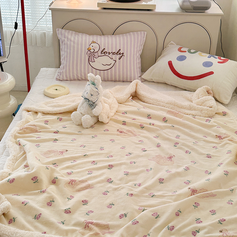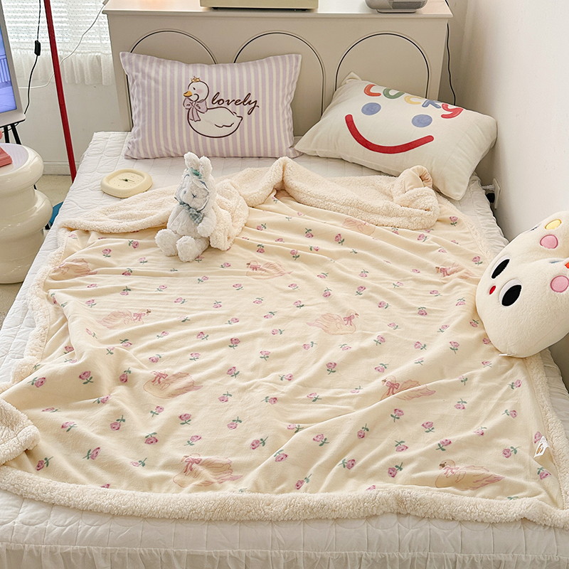 昔可家纺 2023新款ins风牛奶绒羊羔绒印花毛毯(风格一) 天鹅玫瑰