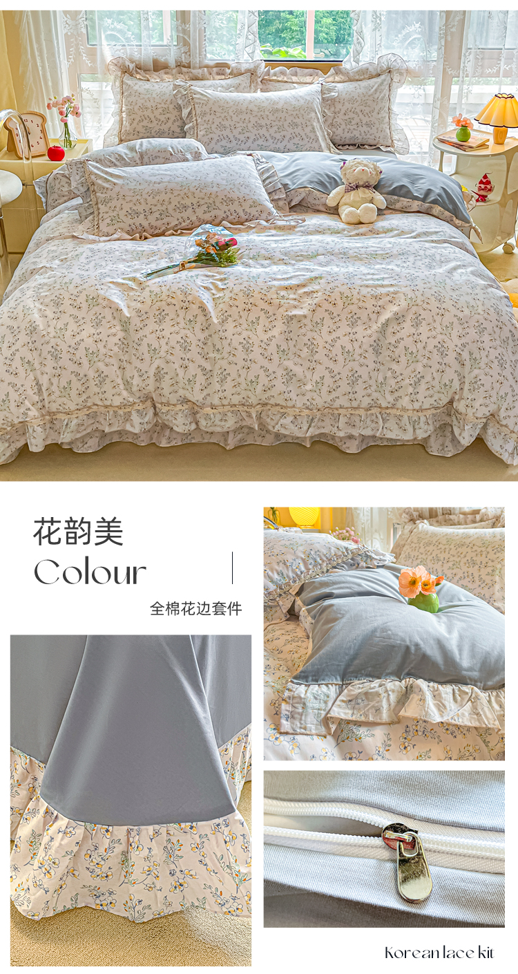 艾唯希家纺 2024新款全棉韩式花边四件套纯棉公主风田园系列 花韵美