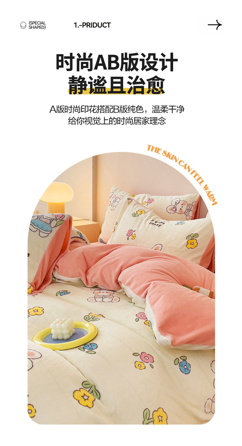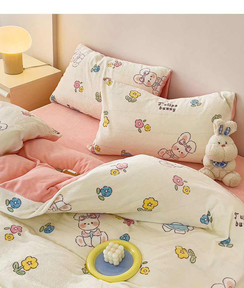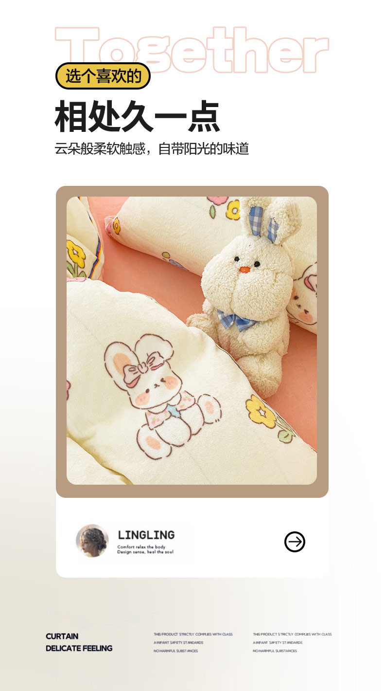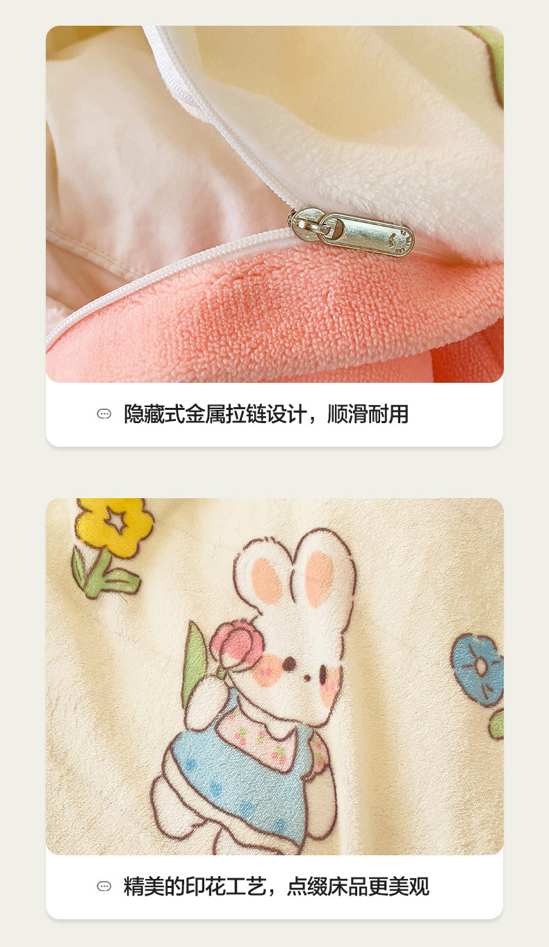 商品名称:木堇 2023新款牛奶绒印花单被套 花朵兔兔